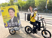 ±èÂù¿ì Á¤ÀÇ´ç µµÀÇ¿ø Èĺ¸, ÀÚÀü°Å ÀÌ¿ëÇÑ Ä£È¯°æ ¼±°Å¿îµ¿ Àü°³¾à°üÀÇ 20¼¼ ³ªÀÌ·Î Áö¹æ¼±°Å Ãâ»çÇ¥¸¦ ´øÁø ±èÂù¿ì Á¤ÀÇ´ç °æ±âµµÀÇ¿ø ÆÄÁÖ1¼±°Å±¸ È帰¡ ÀÚÀü...