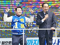 4.10 ÃѼ± ³«¼± Èĺ¸ ¡®ÁöÁö¿Í ¼º¿ø °¨»ç¡¯ ÀÎ»ç ¹Ú¿ëÈ£ È帰¡ ³«¼± Àλ縦 Çϰí ÀÖ´Ù.<¹Ú¿ëÈ£ Èĺ¸ Á¦°ø>4.10 ÃѼ±¿¡¼ ¼±ÀüÀ» ÆîÃÆÁö¸¸ °í...