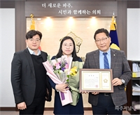 ½ÃÀÇȸ ¡®2¿ùÀÇ ÄªÂù°ø¹«¿ø¡¯ ¹ÚÁöÇý ÁÖ¹«°ü ¼±Á¤ ½Ã»óÆÄÁÖ½ÃÀÇȸ(ÀÇÀå À̼ºÃ¶)´Â 15ÀÏ ÀÌ´ÞÀÇ ÄªÂù°ø¹«¿øÀ¸·Î ¹ÚÁöÇý ÁÖ¹«°ü(ÀÚÄ¡Çù·Â°ú)ÀÌ ¼±Á¤ÇØ ¹ßÇ¥Çß´Ù.¸ñÁø...