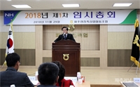 ÆÄÁÖ¿¬ÃµÃàÇù(Á¶ÇÕÀå ÀÌöȣ)´Â 29ÀÏ À¯Åë»ç¾÷´Ü ȸÀǽǿ¡¼ ´ëÀÇ¿ø, ÀÓ¿øÀÌ Âü¼®ÇÑ °¡¿îµ¥ 2018³âµµ Á¦1Â÷ ÀÓ½ÃÃÑȸ¸¦ ¿°í Á¤°ü°³Á¤(¾È)°ú 2019³â »ç¾÷...