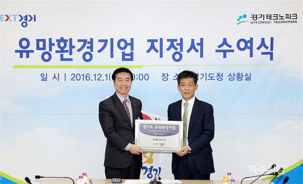 À̺´°ü ´ëÇ¥(»çÁø ¿ì)°¡ ÀÌÀçÀ² ºÎÁö»ç·ÎºÎÅÍ ÀÎÁõ¼¸¦ ¹Þ°í ÀÖ´Ù. ÆÄÁÖ¸¦ ´ëÇ¥Çϴ ȯ°æ±â¾÷À¸·Î ÀÔÁö¸¦ ´ÙÁö°í ÀÖ´Â Ã»ÇØENV(ÁÖ)(´ëÇ¥ÀÌ»ç À̺´°ü)ÀÌ °æ±âµµ À¯¸Áȯ°æ±â¾÷À¸·Î ¼±Á¤µÆ´Ù.