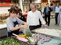 ÀÌÀçÈ« ½ÃÀå ºÎºÎ°¡ ¹®»ê ÀÚÀ¯½ÃÀå¿¡¼ Ãß¼® ¼ÛÆíÀ» ±¸¸ÅÇϰí ÀÖ´Ù. ÀÌÀçÈ« ½ÃÀåÀº ¹ÎÁ· ÃÖ´ë ¸íÀýÀÎ Ãß¼®À» ¸Â¾Æ 25ÀÏ ±ÝÃÌ ÅëÀϽÃÀå µî ÀüÅë½ÃÀåÀ» ¹æ¹®, ...