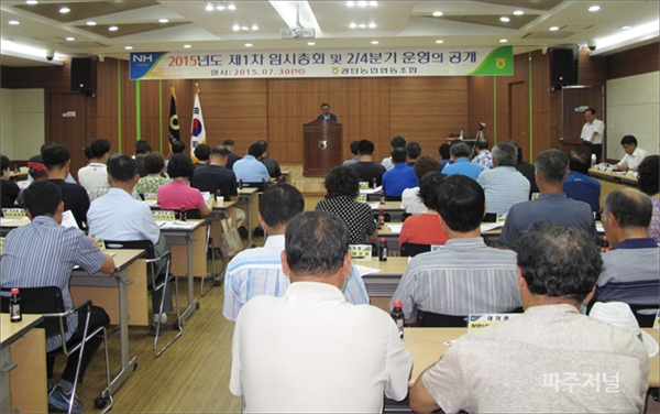 ±¤Åº³óÇù(Á¶ÇÕÀå ¹éÁ¶Çö)Àº Áö³´Þ 30ÀÏ ´ëȸÀǽǿ¡¼ ´ëÀÇ¿ø°ú ÀÓ¿øÀÌ Âü¼®ÇÑ °¡¿îµ¥ 1Â÷ ÀÓ½ÃÃÑȸ ¹× ¡®2/4ºÐ±â ¿î¿µ¡¯À» °ø°³ÇÏ°í ¼º½ÇÇÏ°Ô °æ¿µ¿¡ ÀÓÇÒ °ÍÀ» ¹àÇû´Ù. ÀÓ½ÃÃÑȸ¿¡¼ ¹éÁ¶Çö Á¶ÇÕÀåÀº ¡°¹«´õ¿î ³¯¾¾¿¡ °Ç°¿¡ À¯ÀÇÇÏ°í ¿ÃÇØ »ç¾÷¿¡ Àß Ç®¸®±â¸¦ ¹Ù¶õ´Ù¡±¸ç ¡°Á÷¿ø Áöµµ °ü¸®ÀÇ ¼ÒȦÇÑ Á¡¿¡ ´ëÇÑ Á¶ÇÕ¿øÀÇ ¸Å¼¿î ÁúŸµµ °âÇãÈ÷ ¹Þ¾Æµé¿© ¿ä±¸»çÇ×À» ¼º½ÇÈ÷ ¼öÇà Çϰڴ١±°í ¾à¼ÓÇß´Ù.