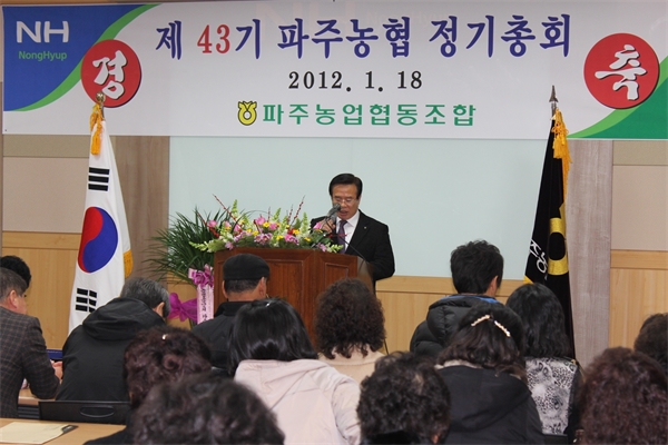 ÆÄÁÖ³óÇù(Á¶ÇÕÀå ±èÀ±¼®) Á¦43±â Á¤±âÃÑȸ¡®°¡ Áö³­ 18ÀÏ È¸Àǽǿ¡¼­ ¼ºÈ²¸®¿¡ ¿­·È´Ù.