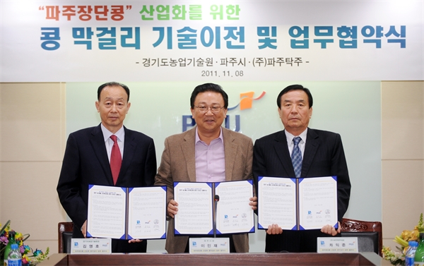 ÆÄÁÖ¸¦ ´ëÇ¥ÇÏ´Â ³ó»ê¹°ÀÎ ÆÄÁÖÀå´ÜÄáÀ» ÀÌ¿ëÇÑ ¸·°É¸®°¡ º»°Ý, Ãâ½ÃµÈ´Ù. ÆÄÁֽô 8ÀÏ °æ±âµµ³ó¾÷±â¼ú¿ø(¿øÀå ±è¿ëÈ£), (ÁÖ)ÆÄÁÖŹÁÖ(´ëÇ¥ Â÷ÀÍÁØ)¿Í ÆÄÁÖÀå´ÜÄḷ°É¸® »ê¾÷ȸ¦ À§ÇÑ ±â¼úÇù¾à ¹× ´ÙÀÚ°£¾÷¹« Çù¾àÇà»ç¸¦ °¡Á³´Ù. À̳¯ Çù¾àÀº Áö¿ª ³ó*Ư»ê¹°ÀÎ ÆÄÁÖ½Ò°ú ÆÄÁÖÀå´ÜÄáÀ» ÀÌ¿ëÇÑ ¡®ÆÄÁÖÀå´ÜÄḷ°É¸®¡¯¸¦ °ü±¤ »óǰÈÇÏ°í ¼ÒºñÁõÁøÀ» À§ÇØ ¸¶·ÃµÆÀ¸¸ç ´ëÇ¥ÀûÀÎ ³ó*Ư»ê¹°ÃàÁ¦ÀÎ ÆÄÁÖÀå´ÜÄáÃàÁ¦¿Í ÇÔ²² ÆÄÁÖÀÇ ´ëÇ¥ÀûÀÎ Áö¿ª Ư»êÁÖ·Î °³¹ßµÈ´Ù. Çù¾àÀ» ÅëÇØ °æ±âµµ³ó¾÷±â¼ú¿øÀº (ÁÖ)ÆÄÁÖŹÁÖ¿¡ Àå´ÜÄá¿¡ ±ÕÀ» ¹è¾ç½ÃŰ´Â ±â¼ú°ú ¹ßÈ¿ ½Ã Á÷Á¢ ÷°¡, ¹ßÈ¿½ÃŰ´Â ƯÇã ±â¼úÀ» ÀÌÀüÇÏ°Ô µÈ´Ù. ±â¼ú¿øÀÇ ¹ßÈ¿±â¼úÀº ÄáÀÇ ÇÔÀ¯·®ÀÌ ±âÁ¸ Äá ¸·°É¸®º¸´Ù ¸¹ÀÌ ÇÔÀ¯µÅ °Ç°¿¡µµ ÁÁÀ¸¸ç Æú¸®Æä³î ÇÔ·®µµ ³ô¿© ¸ÀÀÌ ±í°í µÞ¸ÀÀÌ °í¼ÒÇÏ°í ´ã¹éÇÑ °ÍÀÌ Æ¯Â¡ÀÌ´Ù. (ÁÖ)ÆÄÁÖŹÁÖ Â÷ÀÍÁØ ´ëÇ¥´Â ¡°ÆÄÁÖÀå´ÜÄḷ°É¸® Çù¾àÀ¸·Î ¾çÁ¶Àå »ý»ê¼º Çâ»ó°ú Áö¿ªÀÇ ºê·£µå°¡Ä¡¸¦ ³ôÀÏ ¼ö ÀÖµµ·Ï ³ë·ÂÇØ ³ª°¥ ¹æÄ§¡±À̶ó°í ¹àÇû´Ù. Á¦Ç°Àº ¿À´Â 18ÀÏ ¿¸®´Â Àå´ÜÄáÃàÁ¦¿¡ ù Ãâ½ÃµÉ ¿¹Á¤ÀÌ´Ù. ÇÑÆí ½Ã´Â ÆÄÁÖÀå´ÜÄḷ°É¸® »ý»êÀ» À§ÇÑ ±â¼úÁö¿ø°ú ¾ÈÁ¤Àû ¿ø·á °ø±Þ, À¯Åë°ü¸® µî ǰÁú°ü¸® Áö¿ø ¹× °øµ¿ ¸¶ÄÉÆÃÀ» Áö¿øÇÒ °èȹÀÌ´Ù.