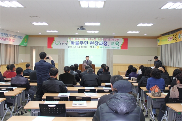 ÆÄÁÖ³óÇù(Á¶ÇÕÀå ±èÀ±¼®)Àº 22ÀÏ È¸Àǽǿ¡¼ '¸¶À»ÁֹΠÇöÀå°úÁ¤' ±³À°À» ½Ç½ÃÇß´Ù. À̳¯ ±³À°¿¡´Â ±èÀ±¼® Á¶ÇÕÀåÀ» ºñ·ÔÇÑ Á¶ÇÕ °ü°èÀÚ¿Í À¯¾ç¼ø ºÎ³àȸÀå µî ¸¶À» ºÎ³àȸÀå°ú »õ¸¶À»ÁöµµÀÚ, ÀÌÀå µîÀÌ Âü¼®Çß´Ù. ±³À°Àº °¿ø ȫõ »êÃʿ︶À» º¯Çص¿ ´ëÇ¥¸¦ °»ç·Î ÃÊû, '³óÃ̸¶À» Ȱ¼ºÈ ¹æ¾È'°ú '³óÇù Á¶Á÷ÀåÀÇ ¿ªÇÒ' µî¿¡ ´ëÇØ °Àǰ¡ ÁøÇàµÆ´Ù.