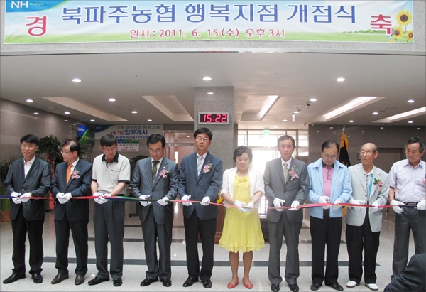 ºÏÆÄÁÖ³óÇù(Á¶ÇÕÀå ±è¿ø³â)Àº 15ÀÏ ¹®»êÇູ¼¾ÅÍ ³»¿¡ ÇູÁöÁ¡(ÁöÁ¡Àå ÀåÀι®) °³Á¡½ÄÀ» °¡Á³´Ù. °³Á¡½Ä¿¡´Â ¿©»ó±Ã ³óÇùÁß¾ÓȸÆÄÁÖÁöÁ¡Àå, Ȳ¼öÁø ¹®»êÀ¾Àå, ±èÀ±¼® ÆÄÁÖ³óÇùÁ¶ÇÕÀå, À±¿µ±â źÇö³óÇùÁ¶ÇÕÀå, Ȳ±Ô¿µ ½Å±³ÇϳóÇùÁ¶ÇÕÀå, ¹éÁ¶Çö ±¤Åº³óÇùÁ¶ÇÕÀå, ±èÀçȯ Á¶¸®³óÇù Á¶ÇÕÀå, À嵿¹® µ¿ÈCNF´ëÇ¥, ¹ÚÁ¤,ÆÄÁ̷ֹ¡¹ßÀü¿¬¼ö¼ÒÀå, ÁֹΠµî 200¿©¸íÀÌ Âü¼®Çß´Ù. ±è¿ø³â Á¶ÇÕÀåÀº Àλ縻¿¡¼ ¡°ºÏÆÄÁÖ³óÇù ÇູÁöÁ¡ °³¼Ò´Â Áö¿ª³óÇùÀ¸·Î´Â Àü±¹¿¡¼ ÃÖÃÊ·Î ÇàÁ¤¼ºñ½ºº¹Áö½Ã¼³¿¡ ÁöÁ¡À» °³¼³ÇÑ °Í¡±À̶ó¸ç ¡°¹®»êÇູ¼¾ÅÍ °³¼Ò¸¦ ¾ÕµÎ°í ÁöÁ¡ °³¼³À» °èȹÇß°í ´Üµ¶À¸·Î ÀÔÃ¢ÇØ ³«Âû¹Þ¾Ò´Ù¡±°í ¼³¸íÇß´Ù. ÀÌ¾î ±è Á¶ÇÕÀåÀº ¡°Àû±ØÀûÀÌ°í ±àÁ¤ÀûÀÎ ¸¶Àε带 °¡Áø Á÷¿øµéÀÌ °í°´ÀÌ ÇູÇÑ ÃÖ°íÀÇ ¼ºñ½º¸¦ Á¦°øÇØ ºÏÆÄÁÖ ¹ø¿µ¿¡ ÇÊ¿äÇÑ ±ÝÀ¶´ã´çÀ» Ã¥ÀÓ Áú °Í¡±À̶ó°í ¸»Çß´Ù. ¿©»ó±Ã ÁöºÎÀåÀº Ãà»ç¿¡¼ ¡°´ëÇüÀÚº»À» ¾Õ¼¼¿î ¿Ü±¹±â¾÷ÀÌ ¸ô·Áµé°í ÀÖ´Â Çö½Ç¿¡ ±ÝÀ¶»ç¾÷¿©°ÇÀº ¾Çȵǰí ÀÖ´Ù¡±¸ç ¡°ÀÌ·¯ÇÑ ±ÝÀ¶È¯°æ¿¡¼ ³óÇùÀÇ ¿ªÇÒÀº ¹«¾ùº¸´Ù Áß¿äÇϸç ÇູÁöÁ¡ °³Á¡ÀÇ ÀÇÀǰ¡ Å©´Ù¡±°í °Ý·ÁÇß´Ù. ÇູÁöÁ¡ °³¼Ò·Î ºÏÆÄÁÖ³óÇùÀº º»Á¡°ú Àû¼ºÁöÁ¡, ÆÄÆòÁöÁ¡, ¼±À¯ÁöÁ¡, ´çµ¿ÁöÁ¡ µî 5°³ ÁöÁ¡À» °®Ãç ºÏÆÄÁÖ Á᫐ ±ÝÀ¶±â°üÀ¸·Î ÀÚ¸®¸¦ ±»Çû´Ù´Â Æò°¡´Ù.