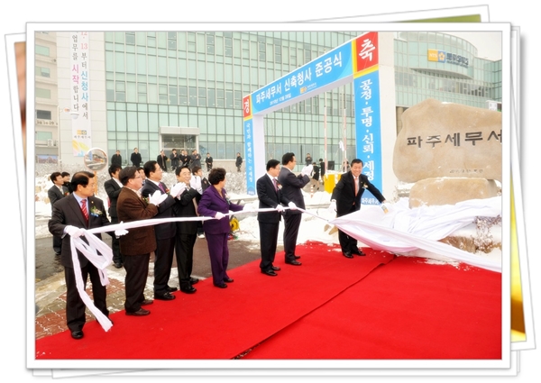 ÆÄÁÖ¼¼¹«¼(¼Àå À̺¹Èñ) ½Åû»ç Áذø½ÄÀÌ 28ÀÏ ±Ý¸ªµ¿ ÇöÁö¿¡¼ ¿·È´Ù. Áذø½Ä¿¡´Â Á¤¿¬½Ä ÁߺÎÁö¹æ±¹¼¼Ã» ³³¼¼Áö¿ø±¹Àå µî ±¹¼¼Ã» °ü°èÀÚ, ȲÁøÇÏ ±¹È¸ÀÇ¿ø, ÀÌÀÎÀç ½ÃÀå, À¯º´¼® ÆÄÁÖ½ÃÀÇȸ ÀÇÀå, Á¶¿ëÅ °æÂû¼Àå, ÀÌÇâ¿í ±³À°Àå, ÃÖÅ¿µ ¼Ò¹æ¼Àå, ±è¾çÆò »ó°øÈ¸ÀǼÒȸÀå, Àü¼ø°ü ÆÄÁÖ¼¼¹«¼ ¼¼Á¤ÀÚ¹®È¸Àå µî ±â°ü´ÜüÀåÀÌ Âü¼®Çß´Ù. Áö³ 13ÀϺÎÅÍ ¾÷¹«¸¦ ½ÃÀÛÇÑ ½Åû»ç´Â ´ëÁö 9õ898§³(2õ994Æò)ÅÍ¿¡ ¿¬¸éÀû4õ433§³(1õ341Æò) ±Ô¸ð·Î ÁöÇÏ1Ãþ, Áö»ó3ÃþÀÇ Ã»»çµ¿°ú ¿¬¸éÀû 563§³(179Æò)ÀÎ Áö»ó 3ÃþÀÇ ÇÕ¼÷¼Ò°¡ µé¾î¼¹´Ù. ¶Ç ¹Î¿øÀÎÀ» À§ÇÑ 150¿©´ë ±Ô¸ðÀÇ ÁÖÂ÷°ø°£À» º¸À¯, Ä£ÀýÇÏ°í ¿Ïº®ÇÑ ¼¼¹«¼ºñ½º¸¦ Á¦°øÇÑ´Ù. À̺¹Èñ ¼ÀåÀº Àλ縻¿¡¼ "±ÝÃ̵¿ ¿¾ û»ç¿¡¼´Â °ø°£ ºÎÁ· µîÀ¸·Î ¹Î¿øÀο¡°Ô ¸¸Á·½º·¯¿î ¼¼¹«¼ºñ½º¸¦ Á¦°øÇϱ⠾î·Á¿ü´Ù¡°¸é¼ ¡±½Åû»ç¿¡¼´Â Á÷¿øµéÀÇ º¹Áö¿Í ³³¼¼ÀÚµéÀÌ ½Å·ÚÇÏ´Â ±¹¼¼ÇàÁ¤À» ÆîÄ¡°Ú´Ù¡°°í ¸»Çß´Ù. ÀÌ ¼ÀåÀº ¶Ç ¡°°ú¼¼Ç°Áú Çâ»ó°ú ¾ï¿ïÇÑ ¼¼±ÝÀ¸·Î ³³¼¼ÀÚ°¡ ÇÇÇØ¸¦ º¸´Â ÀÏÀÌ ¾øµµ·Ï ÇϰڴÙ"°í µ¡ºÙ¿´´Ù. ÀÌÀÎÀç ½ÃÀåÀº Ãà»ç¿¡¼ "½ÅÃà °Ç¹°·Î ÀÌÀüÇÔ¿¡ µû¶ó ¼¼¹«ÇàÁ¤À¸·Î ÀÎÇÑ ºÒÆíÀÌ ÇØ¼ÒµÉ °Í¡°À̶ó¸ç ¡±±â¾÷Çϱâ ÁÁÀº ÆÄÁÖ¸¦ ¸¸µé±â¿¡ ¼¼¹«¼µµ µ¿Âü, ±â¾÷ÀεéÀÇ ¾Ö·Î»çÇ׿¡ ±Í¸¦ ±â¿ï¿© ÁÙ °Í"À̶ó°í ´çºÎÇß´Ù. ÇѼºÈñ ±âÀÚ