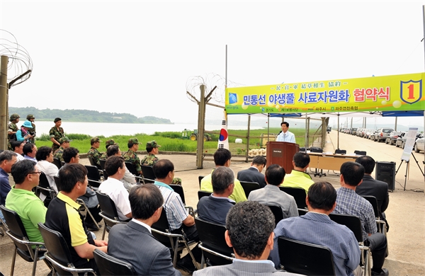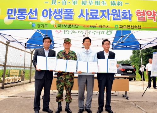¹ÎÅë¼± ³» ÏÚ ÀÛÀüÁö¿ª¿¡¼ ÀÚ¶ó´Â ¾ß»ýÇ®ÀÌ Áö¿ª Ãà»ê³ó°¡¿¡ ûÁ¤ »ç·á·Î °ø±ÞµÈ´Ù. °æ±âµµ´Â 14ÀÏ Àå´Ü¸é °Å°î¸® ÇöÀå¿¡¼ FTA ÃßÁø, ±¸Á¦¿ª¹ß»ý µîÀ¸·Î ¾î·Á¿òÀ» °Þ°í ÀÖ´Â Ãà»ê ³ó°¡¸¦ µ½±â À§ÇØ Áö³ÇØ ÇϹݱâºÎÅÍ ÃßÁøÇØ ¿Â ¡®°áÃÊ»ó»ý(Ì¿õ®ßÓßæ)¡¯ Çù¾àÀ» ü°áÇß´Ù. À̳¯ Çù¾à¿¡´Â ±è¹®¼ö °æ±âµµÁö»ç, ·ùȼ± ½ÃÀå, ½ÅÇöµ· Á¦1»ç´ÜÀå, ÀÌöȣ ÆÄÁÖ¿¬ÃµÃàÇù Á¶ÇÕÀå µîÀÌ Âü¼®Çß´Ù. Çù¾à¿¡¼ ±è¹®¼ö Áö»ç´Â ¡°¾î·Á¿î ½Ã±â¿¡ ¹Î°ü±ºÀÌ Çù·ÂÇØ ¹ÎÅë¼± Áö¿ª¿¡ ÀÖ´Â ¾ß»ýÇ®À» »ç·á·Î ÀÌ¿ëÇÒ ¼ö ÀÖµµ·Ï ÇÑ °ÍÀº Ãà»ê³ó°¡¿¡ ¿ë±â¸¦ ÁÙ ¼ö ÀÖ´Â ÀÏ¡±À̶ó¸ç "»ç·áºñ Àý°¨À¸·Î »ý»ê¼ºÀ» Çâ»óÇϰí, ºÎÁ¸ÀÚ¿øÀ» Ȱ¿ëÇÔÀ¸·Î½á ¿Üȸ¦ Àý°¨ÇÏ´Â µî 1¼®3Á¶ÀÇ È¿°ú°¡ ±â´ëµÇ´Â ¸Å¿ì ¶æ ±íÀº »ç¾÷¡±À̶ó°í ¼³¸íÇß´Ù. À̹ø Çù¾àÀ¸·Î ÆÄÁÖ¿¬ÃµÃàÇùÀº ¹ÎÅë¼± ³» 135ha¿¡¼ Àڶ󳪴 ¾ß»ýÇ® 9õ450ÅæÀ» »ý»êÇØ ³ó°¡¿¡ °ø±Þ, ³ó°¡ °æ¿µ°³¼±Àº ¹°·Ð 13¾ï¿©¿øÀÇ ¿ÜÈÀý°¨ È¿°ú¸¦ °ÅµÑ ¼ö ÀÖÀ» °ÍÀ¸·Î ±â´ëµÈ´Ù. °æ±âµµ´Â À̹ø¿¡ ¾ß»ýÇ®·Î ¸Î¾îÁø ¹Î°ü±ºÀÇ »ó»ý°ü°è°¡ Áö¿ª°æÁ¦¹ßÀüÀ» µµ¸ðÇÏ´Â ÃÖÃÊÀÇ ¸ðµ¨ÀÌ µÉ °ÍÀ¸·Î º¸°í ÀÖ´Ù.