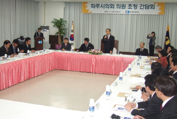 ÆÄÁÖ»ó°øÈ¸ÀǼÒ(ȸÀå À±ÁÖÄ¥)Àº 3ÀÏ ¿ÀÈÄ È¸Àǽǿ¡¼­ ÆÄÁÖ½ÃÀÇȸ ½ÅÃæÈ£ ÀÇÀå, ±è¿µ±â ºÎÀÇÀå µî ½ÃÀÇ¿øÀ» ÃÊû, °£´ãȸ¸¦ °¡Á³´Ù.