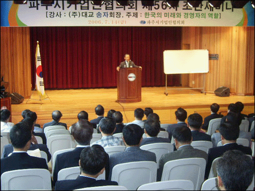 "±Û·Î¹ú ºñÁî´Ï½º¸Ç ¿ªÇÒ Áß¿ä" ¼ÛÀÚ ´ë±³È¸Àå ÃÊû °¿¬ ÆÄÁֽñâ¾÷ÀÎÇùÀÇȸ(ȸÀå À±ÁÖÄ¥)°¡ ÁÖÃÖÇÑ Á¦56Â÷ Á¶Âù¼¼¹Ì³ª°¡ 14ÀÏ ¿©¼ºÈ¸°ü ´ë°´ç¿¡¼ ±â¾÷Àΰú °ø¹«¿ø µî 100¿© ¸íÀÌ Âü¼®ÇÑ °¡¿îµ¥ ¿·È´Ù. Á¶Âù¼¼¹Ì³ª¿¡¼ ¼ÛÀÚ(ÁÖ)´ë±³ ȸÀå(Àü ¿¬¼¼´ë ÃÑÀå)ÀÌ 'Çѱ¹ÀÇ ¹Ì·¡¿Í °æ¿µÀÚÀÇ ¿ªÇÒ'À» ÁÖÁ¦·Î °¿¬À» ÆîÃÄ ¿·ÄÇÑ ¹Ú¼ö¸¦ ¹Þ¾Ò´Ù. ¼ÛÀÚ È¸ÀåÀº "¼¼°è 10À§ °æÁ¦´ë±¹ÀÌ µÈ Çѱ¹Àº ÀÌÁ¦ ¼¼°èÈ¿¡ ºÎÀÀÇØ¾ß ÇÑ´Ù"¸é¼ "¼¼»óÀº »¡¸® º¯ÇÏ°í °³¹æÈ·Î ³ª¾Æ°¡´Â ¼¼°è ¿ª»çÀÇ È帧Àº ºÎÀÎÇÒ ¼ö ¾ø´Ù"°í ÀüÁ¦Çϰí "21¼¼±â´Â °æ¿µÀÚÀÇ ½Ã´ëÀ̰í Áß¼Ò¡¤´ë±â¾÷À» ºÒ±¸Çϰí ÇϳªÀÇ ½ÃÀåÀ» ÇâÇØ ´Þ·Á°¡°í ÀÖÀ¸¸ç ¿©±â¿¡ ÀûÀÀÇÏÁö ¸øÇÏ¸é µµÅµȴÙ"°í °æ°íÇß´Ù. ¶Ç ±×´Â "¸¶¶óÅæÀ¸·Î ½ÃÀÛÇÑ ¿Ã¸²ÇÈÀÌ ´Ù¾çÇÑ °æ±â·Î ¹ßÀüÇϰí ÀÖ°í ±Ý¸Þ´Þ 10°³·Î ½ÂºÎ°¡ °¡·ÁÁö´Â °Í°ú °°ÀÌ °æÁ¦µµ ¸¶Âù°¡Áö·Î ´Ù¾çÈÇÑ ½ÃÀå¿¡¼ 2µîÀº Àý´ë ¾ÈµÇ°í ¿À·ÎÁö 1µî¸¸ »ì¾Æ³²´Â´Ù"°í °Á¶Çß´Ù. ¼Û ȸÀåÀº "Áö½ÄÁ¤º¸ÈÀÇ »çȸ°¡ µµ·¡Çϰí ÀÖ°í µÎ³ú·Î ÀÏÇÏ´Â ¼¼»óÀ̱⿡ ¿©¼ºÁöµµÀÚ°¡ ¸¹ÀÌ ³ª¿Ã °Í"À̶ó°í ¿¹°ßÇß´Ù. ¼Û ȸÀåÀº "±³À°¿¡ ÅõÀÚÇØ »õ·Î¿î Áö½ÄÀ» âÁ¶ÇÏ´Â »ç¶÷ÀÌ °æÀï·ÂÀ» °®Ãâ ¼ö ÀÖÀ¸¸ç ±â¾÷Àº °í°´ÀÌ ¹«¾ùÀ» ¿øÇÏ´ÂÁö ¾Ë¾Æ¼ ÃæÁ·ÇØÁà¾ß ÇÏ°í ±×·± ±â¾÷¸¸ÀÌ »ì¾Æ³²´Â´Ù"¸é¼ "¾ÕÀ¸·Î´Â Á¤ºÎ°¡ ¸¸µå´Â ÀÏÀÚ¸®´Â Àû¾îÁú °Í"À̶ó°í ¸»Çß´Ù. ±×´Â "Á¤ºÎ ÁÖµµº¸´Ù °æ¿µÀÚ°¡ ¸¸µé¾î³ª°¡´Â ¼¼°èÈ´Â ¸·À» ¼ö ¾ø±â¿¡ ´õºÒ¾î ÀÏÇÒ ¼ö ÀÖ´Â ±Û·Î¹ú ºñÁî´Ï½º¸ÇÀÇ ¿ªÇÒÀ» ÇØÁÙ °Í"À» ´çºÎÇß´Ù. À±ÁÖÄ¥ ȸÀåÀº "¿ì¸® ±â¾÷ÀεéÀº ±Þº¯ÇÏ´Â °æÁ¦È¯°æ¿¡ ´ëÀÀÇÏ¿© ±â¾÷À» ¹ßÀü½ÃÄÑ¾ß Çϴ åÀÓ°ú Àǹ«°¡ ÀÖ´Ù"°í ÀüÁ¦Çϰí "±¹°¡ °æÁ¦°¡ ¾î·Æ´Ùº¸´Ï °æ¿µÈ¯°æÀÌ ³¯·Î ¾Çȵǰí ÀÖÀ¸³ª ÀÌ·± ¶§Àϼö·Ï ÀÚÁÖ ¸¸³ª¼ ¼·Î µ½°í °Ý·ÁÇÏ¸ç ±â¾÷°æ¿µ¿¡ ÇÊ¿äÇÑ Á¤º¸¸¦ ³ª´©¸ç ÈûÀ» ³»ÀÚ"°í °Ý·ÁÇß´Ù. À± ȸÀåÀº "´©°¡ ¹¹·¡µµ ¿ì¸®³ª¶ó¸¦ ¼¼°è10´ë °æÁ¦´ë±¹ÀÇ ¹Ý¿¿¡ ¿Ã·Á³õÀº °ÍÀº ±â¾÷ÀεéÀÇ ±â¾÷°¡ Á¤½Å°ú µµÀüÁ¤½ÅÀÌ´Ù"¸ç "ȸÀå ¼±ÀÓÀÌÈÄ Ã³À½À¸·Î ¿¬ ±â¾÷ÀÎ ¼¼¹Ì³ª°¡ ÁÁÀº °ÀǸ¦ ÅëÇØ °æ¿µ¿¡ ´ëÇÑ ¾ÆÀ̵ð¾î¸¦ ¾ò´Â ÀÚ¸®°¡ µÈ °ÍÀ» ¹Ù¶÷Á÷ÇÏ°Ô »ý°¢ÇÑ´Ù"°í ¸»Çß´Ù. À± ȸÀåÀº "¾ÕÀ¸·Îµµ (±â¾÷ÀÎ ¼¼¹Ì³ª°¡) °Ý½Ä¿¡ ¾ô¸ÅÀÌ´Â Çà»ç°¡ ¾Æ´Ï¶ó »ç¾÷¿¡ ´ëÇÑ Á¤º¸¸¦ ¾ò°í °Ý·ÁÇØÁÖ´Â ÁÁÀº ¸¸³²ÀÇ Àå"À¸·Î À̲ø°Ú´Ù°í ¹àÇû´Ù.