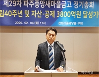 ±è¿ëÁÖ ÀÌ»çÀåÀÌ Àλ縻À» Çϰí ÀÖ´Ù.ÆÄÁÖÁß¾Ó»õ¸¶À»±Ý°í(ÀÌ»çÀå ±è¿ëÁÖ)°¡ ⸳ 40³â ¸¸¿¡ ÀÚ»ê*°øÁ¦ 3,800¾ï ¿øÀ» ´Þ¼º, »õ¸¶À»±Ý°í¿¡¼´Â µå¹°°Ô 4,00...