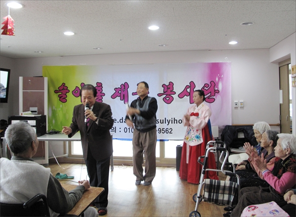 ¼úÀÌȦ ºÀ»ç´Ü(´ÜÀå ±è¼¼È­)Àº 25ÀÏ ³ëÀοä¾ç½Ã¼³ ÇìÀ̸® ³Ê½ÌȨÀ» ¹æ¹®, ¾î¸£½ÅÀ» ¸ð½Ã°í Ãã°ú ³ë·¡ µîÀ¸·Î ÈïÀ» µ¸¿ì¸ç À§·ÎÇÏ´Â ºÀ»çȰµ¿À» ½Ç½ÃÇß´Ù.