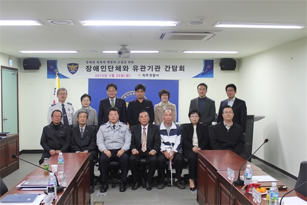 ÆÄÁÖ°æÂû¼(¼Àå ±èâ½Ä)´Â 22ÀÏ ÀÓÁø¸¶·ç¿¡¼ Àå¾ÖÀÎ ¼ºÆø·Â ¿¹¹æ°ú ±ÙÀýÀ» À§ÇÑ ÇùÀÇȸ ±¸¼ºÇÏ°í °£´ãȸ¸¦ °³ÃÖÇß´Ù. ¡®¼ºÆø·Â ¿¹¹æ ÇùÀÇȸ¡¯´Â Áõ°¡ Ãß¼¼¿¡ ÀÖ´Â Àå¾ÖÀÎ ¼ºÆø·Â »ç°ÇÀ» ´Éµ¿ÀûÀ¸·Î ´ëóÇÏ°í ¼ºÀνĿ¡ ´ëÇÑ ±³À°À» °ÈÇϱâ À§ÇØ Àå¾ÖÀο¬ÇÕȸ µî À¯°ü±â°üµé°ú °øµ¿À¸·Î ´ëóÇϰíÀÚ ±¸¼ºµÆ´Ù °£´ãȸ¿¡´Â À̼ø¿ì ÆÄÁÖ½ÃÀå¾ÖÀο¬ÇÕȸÀå µî 6°³ Àå¾ÖÀÎ ´Üü ´ëÇ¥, ¼ºÆø·Â»ó´ã¼Ò µî À¯°ü´Üü °ü°èÀÚ°¡ Âü¼®Çß´Ù. À̼ø¿ì ȸÀåÀº ¡°°æÂûÀÌ Àå¾ÖÀο¡ ´ëÇÑ °ü½É°ú ¹è·Á·Î À¯°ü±â°üµé°ú ÇùÀÇȸ¸¦ ±¸¼ºÇÑ °ÍÀº ¹Ù¶÷Á÷ÇÑ ÀÏ¡±À̶ó¸ç ¡°Àå¾ÖÀÎ ¼ºÆø·Â ¿¹¹æÈ°µ¿¿¡ Àû±Ø µ¿ÂüÇϰڴ١±°í ¸»Çß´Ù ±èâ½Ä ¼ÀåÀº ¡°ÇùÀÇȸ ±¸¼ºÀ» °è±â·Î À¯°ü´Üüµé°ú ÈûÀ» ¸ð¾Æ Àå¾ÖÀÎ ¼ºÆø·ÂÀ» ô°áÇϰڴ١±°í °ÇÑ ÀÇÁö¸¦ ÇÇ·ÂÇß´Ù