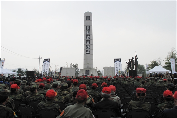 Á¦59ÁÖ³â ÇØº´´ë Àå´Ü‧»çõ°Áö±¸ ÀüÅõ Àü½Â±â³ä ¹× Àü¸ô¿ë»ç ÇÕµ¿Ã߸ðÁ¦°¡ 15ÀÏ °øÁ¤½Ä Á¦6´ëÇØº´´ë»ç·É°ü, ÀÌÀÎÀç ½ÃÀå, ȲÁøÇϱ¹È¸ÀÇ¿ø, ±èÀÎ½Ä (»ç)ÇØº´´ë»ç·ÉºÎÀü¿ìȸÁß¾ÓȸÃÑÀç, ±èº´¼ö (»ç)ÇØº´Àü¿ìȸÆÄÁÖ½ÃÁöȸÀå, ÇØº´°ü°èÀÚ µî 500¿©¸íÀÌ Âü¼®ÇÑ °¡¿îµ¥ ÇØº´1»ç´ÜÀü°ø¼±¾çºñ(Á¶¸®À¾)¿¡¼ ¾ö¼÷ÇÏ°Ô °ÅÇàµÆ´Ù. Ã߸ð½ÄÀº ÇåÈ¿Í ¹¬³ä, Á¶ÃÑ¹ß»ç µî ºÐÇâÀ¸·Î ÁøÇàµÆÀ¸¸ç Âü¼®ÀÚµéÀº Á¶±¹À» Áö۱â À§ÇØ »êÈÇÑ ¼þ°íÇÑ ÇØº´ÀÇ ³ÌÀ» ±â·È´Ù. °øÁ¤½Ä Àü ÇØº´´ë»ç·É°üÀº ȸ°í»ç¿¡¼¡°Áö±Ýµµ ³ª´Â 1952³â 3¿ù 17ÀÏ °³¼º-ÆÇ¹®Á¡-¼¿ï Ã༱(õîàÊ)À» Ã¥ÀÓÁ³´ø °áÀǸ¦ ÀØÀ» ¼ö ¾ø´Ù¡±¸ç ¡°3¹øÂ° ¼öµµ°¡ ÇÔ¶ôÇÒ À§±â¿¡ ¡®¼öµµ ¼¿ïÀ» Áöų ±º´ë´Â ÇØº´´ë¹Û¿¡ ¾ø´Ù¡¯°í À̽¸¸ ´ëÅë·ÉÀÌ ¸¶Áö¸·Ä«µå·Î ¼±ÅÃÇÑ ÇØº´ÀÌ µµ¶ó»ê »çõ° 87‧67‧36‧33°íÁö¿¡¼ ÀûÀ» °ÝÅð½ÃŰ°í ¼¿ïÀ» ÁöÄѳÂÀ¸¸ç ²É°°ÀÌ »êÈÇß´Ù¡±°í ¶³¸®´Â ¸ñ¼Ò¸®·Î ¸»Çß´Ù. À̾î ÇØº´´ë»ç·ÉºÎ, Àü¿ìȸÁß¾Óȸ, ¾Èº¸´Üü µîÀº 16ÀÏ ¹ÎÅë¼± ³» ÆòȰø¿ø¿¡ ÀÖ´Â ÆÄ·ÎÈ£¸¦ Âü¹èÇϰí, ÀÓÁø°¢ °³¼ºÀλïÃàÁ¦ ÇöÀå¿¡¼ ±º¾Ç‧ÀÇÀå´ë ½Ã¹ü, ¸¶Äª°ø¿¬, Ưº°»çÁøÀü½Ãȸ, ÇØº´´ë±ºº¹ Àü½Ã ¹× üÇè, ÀüÅõ½Ä·®, °Ç»§ Àü½Ã ¹× ½Ã½Ä µî ¾Èº¸Ã¼ÇèÇà»ç¸¦ °¡Á³´Ù. ÇѼºÈñ ±âÀÚ