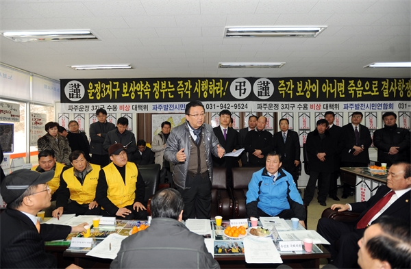 »ç¾÷ÃßÁøÀÌ ¿À¸®¹«ÁßÀÎ ¿îÁ¤3Áö±¸ º¸»ó ¹®Á¦¿Í °ü·Ã, ¼Û±¤È£ ±¹È¸ ±¹ÅäÇØ¾çÀ§¿øÈ¸ À§¿øÀå(Çѳª¶ó´ç)°ú À¯¼±È£ À§¿ø(¹ÎÁÖ´ç) µîÀÌ 11ÀÏ ¿îÁ¤3Áö±¸ º¸»ó ´ëÃ¥À§¿øÈ¸¸¦ ¹æ¹®, ¹Ú¿ë¼ö ÆÄÁÖ¹ßÀü½Ã¹Î¿¬ÇÕȸ À§¿øÀå µî °ü°èÀÚµé·ÎºÎÅÍ °ÇÀÇ»çÇ×À» µé¾ú´Ù. ¼Û±¤È£ À§¿øÀåÀº ÀÚ¸®¸¦ ¸¶·ÃÇÑ È²ÁøÇÏ ÀÇ¿øÀÇ ³ë°í¸¦ À§·ÎÇÏ°í ¡°¿îÁ¤3Áö±¸ °³¹ß»ç¾÷ Àç°³¸¦ À§ÇØ ±¹È¸ Â÷¿ø¿¡¼ ³ë·ÂÇϰڴ١±¸é¼ ¡°»ç¾÷Àç°³¸¦ À§ÇØ ±¹ÅäÇØ¾çºÎ¿Í LH¿¡ °·ÂÇÏ°Ô °ÇÀÇÇϰڴ١±°í ¹àÇû´Ù.