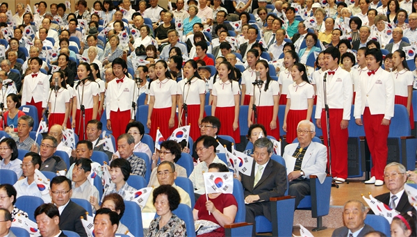Á¦65Áֳ⠱¤º¹Àý ±â³ä½Ä¿¡¼ ³ÆÄÇÕâ´Ü¿øÀÌ ±¤º¹Àý ³ë·¡¸¦ ºÎ¸£°í ÀÖ´Ù.