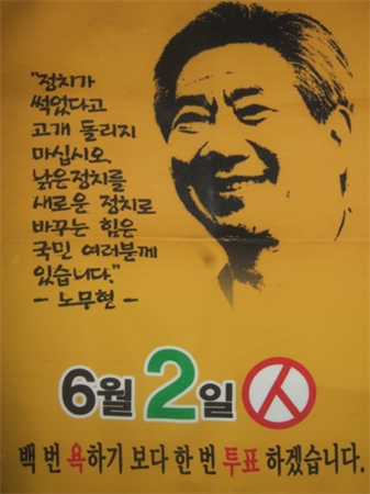 °í(ͺ) ³ë¹«Çö Àü ´ëÅë·É ¼°Å 1Áֱ⸦ ¸Â¾Æ 23ÀÏ °íÀÎÀ» Ã߸ðÇÏ´Â Çà»ç°¡ ±ÝÃ̵¿ ·Îµ¥¿À°Å¸® ºÐ¼ö´ë±¤Àå¿¡¼ ¿·È´Ù. º½ºñ°¡ ³»¸®´Â °¡¿îµ¥ ¿¸° Çà»ç´Â °íÀÎÀÌ »ýÀü¿¡ Ȱµ¿ÇÏ´ø ¸ð½ÀÀ» ´ãÀº »çÁøÀÌ Àü½ÃµÇ°í °íÀÎÀ» Ã߸ðÇÏ´Â ³ë¶õ»ö dz¼±ÀÌ ºÐ¼ö´ë ÁÖº¯¿¡ ²Éó·³ °¡µæ ÇǾîÁ³´Ù. ¶Ç Çà»çÀåÀ» ãÀº ½Ã¹ÎµéÀÌ '´ç½ÅÀ» ¿µ¿øÈ÷ ±â¾ïÇÕ´Ï´Ù' ¶ó´Â µîÀÇ ±ÛÀ» ¾´ ³ë¶õ»ö ¸®º»ÀÌ ÁÖº¯À» ³ë¶þ°Ô ¹°µé¾ú´Ù. Çà»çÀåÀ» ãÀº ±è¸ð¾¾´Â "°íÀÎÀÌ ¼°ÅÇÑÁö ¹ú½á 1³âÀ̶ó´Â ¼¼¿ùÀÌ Áö³µÁö¸¸ (°íÀÎÀ») ¿µ¿øÈ÷ ÀØÁö ¸øÇϰí ÀÖ´Ù"¸é¼ "Âü ¹ÎÁÖÁÖÀÇ ½ÇÇöÀ» À§ÇØ ³ë·ÂÇϽŠ´ÔÀ» À§Çؼ¶óµµ À̹ø ¼±°Å¿¡´Â ¹Ýµå½Ã ÅõÇ¥ÇÒ °Í"À̶ó°í ¸»Çß´Ù.