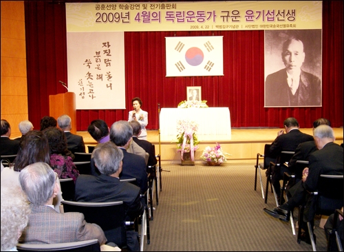 ¡®ÀÌ ´ÞÀÇ µ¶¸³¿îµ¿°¡¡¯ ¼±Á¤ ±â³äÆÐ ¼ö¿© ¹× Çмú°¿¬ ¿·Á ÆÄÁÖÃâ½Å µ¶¸³¿îµ¿°¡ ±Ô¿î À±±â¼· ¼±»ý Àü±â ¡®´ëÇѹα¹ ÀÓ½ÃÁ¤ºÎÀÇ ¹ÎÁ·Çõ¸í°¡ À±±â¼·¡¯(¿ª»ç°ø°£ Ãâ°£) ÃâÆÇȸ ¹× °øÈƼ±¾ç Çмú°¿¬È¸°¡ 22ÀÏ ¹é¹ü±â³ä°ü ´ëȸÀǽǿ¡¼ ¼ºÈ²¸®¿¡ ¿·È´Ù. ÃâÆÇȸ¿¡´Â ±ÇÁ¾Âù (»ç)¼ø±¹¼±¿À¯Á·È¸ºÎȸÀåÀ» ºñ·ÔÇÑ µ¶¸³À¯°øÀÚ, ¹Ú°èµ¿ ±¹È¸»ç¹«ÃÑÀå, ¹ÎŽ ÆÄÁÖ¹®È¿øÀå, ÇØÆòÀ±¾¾Á¾Ä£È¸, À¯Á· µî 350¿©¸íÀÌ Âü¼®Çß´Ù. (»ç)´ëÇѹα¹¼ø±¹¼±¿À¯Á·È¸(ȸÀå ÀÌÈïÁ¾) ÁÖ°üÀ¸·Î ¿¸° Àü±â ÃâÆÇȸ¿Í °øÈƼ±¾ç Çмú°¿¬È¸¿¡ ¾Õ¼ ±¹°¡º¸ÈÆÃ³¿¡¼ ¡®ÀÌ ´ÞÀÇ µ¶¸³¿îµ¿°¡ ¼±Á¤ ±â³äÆÐ¡¯¸¦ ¼ö¿©, µþ À±°æÀÚ¾¾°¡ À¯Á·À» ´ëÇ¥ÇØ ¼±»ýÀÇ ¿µÁ¤ ¾Õ¿¡ ºÀÁ¤Çß´Ù. °øÈƼ±¾ç Çмú°¿¬È¸¿¡¼ ÇѽÃÁØ (´Ü±¹´ë)±³¼ö´Â ¡®¼°£µµ ¸Á¸í°ú ½ÅÈ﹫°üÇб³¡¯ ¡®»óÇØ ÀÓ½ÃÁ¤ºÎ¿¡¼ÀÇ È°µ¿¡¯ ¡®1930³â´ë µ¶¸³¿îµ¿Á¤´ç¡¯ ¡®ÁßÀÏÀüÀï ÀÌÈÄ ÀÓ½ÃÁ¤ºÎ Ȱµ¿¡¯ ¡®±¤º¹ ÈÄ È¯±¹°ú Ȱµ¿¡¯À» ÁÖÁ¦·Î 1½Ã°£ µ¿¾È ¼±»ýÀÇ ¾÷ÀûÀ» °¿¬ÇÑ µÚ, ¡°¼±»ýÀÇ Ç×ÀϿÀº ½ÅÈ﹫°üÇб³¸¦ ⸳ÇÑ µÚ, ƯÈ÷ ¹«Àåµ¶¸³ÅõÀïÀÇ ÈÆ·Ã±³¹üÀ» Æì³»°í ±º¹« Ȱµ¿¿¡ ÁÖ·Â, û»ê¸® ´ëø µî¿¡¼ Ȱµ¿ÇÑ µ¶¸³±º°ú ±¤º¹±ºÀ» ¾ç¼ºÇϴµ¥ Å« °øÀ» ¼¼¿ü´Ù¡±°í °Á¶Çß´Ù. 40³âÀ» Ç×ÀÏÅõÀï¿¡ ¸ö¹ÙÄ£ À±±â¼· ¼±»ýÀº 1908³â µµ»ê ¾Èâȣ¿Í ÇÔ²² û³âÇпìȸ¸¦ Á¶Á÷, 1909³â Áß±¹À¸·Î ¸Á¸íÇØ ½ÅÈ﹫°üÇб³ ±³Àå, ÀÓÁ¤ ±º»çÂ÷Àå, ÀÓÁ¤ ÀÇÁ¤¿ø ÀÇÀå µîÀ» ¿ªÀÓÇÏ¸ç ¹«Àåµ¶¸³ÅõÀï ³ë¼±À» ÁöÁöÇß´Ù. ¡®¼±±¸ÀÚ¡¯ ¡®½ÅÈ﹫°üÇб³ ±³°¡¡¯ ¡®¾Ð·Ï° ÇàÁø°î¡¯ µî Ãà°¡°¡ È帣ÀÚ À¯Á·°ú µ¶¸³À¯°øÀÚ À¯Á·µéÀº ¼±¿ÀÇ µ¶¸³ÅõÀïÀ» ȸ»óÇÏ¸ç °¨È¸¿¡ Á¥¾ú´Ù. ÃâÆÇȸ°¡ ³¡³ µÚ, À¯Á·´ëÇ¥ À±°æÀÚ¾¾(66¡¤Àå³à)´Â Àλ縻¿¡¼ ¡°¾Æ¹öÁö°¡ ³Ê¹« ÀÚ¶û½º·´´Ù. µ¶¸³¿îµ¿°¡µéÀÌ ±¹ÀûÀÌ ¾ø¾î ¹«±¹ÀÚ·Î Áö³Â´Âµ¥ ¿ÃÇØ ±¹Àûȸº¹ÀÌ ÀÌ·ïÁø ÀÏÀÌ ±â»Ú´Ù. Àü±â ÃâÆÇ±â³äȸ¿¡ Âü¼®ÇÑ ¿©·¯ºÐ°ú ÈÄ¿øÇØÁØ 14°³ ´Üü µî ¸ðµç ºÐµé²² °¨»çµå¸°´Ù¡± ¸ç ±íÀÌ °í°³¸¦ ¼÷¿© ÀλçÇß´Ù. ¾Æ¹öÁö À±±â¼· ¼±»ýÀ» ȸ°íÇÏ¸é¼ ³¡³» ¿ïÀ½À» ÅÍÆ®¸®¸ç ¸»À» ÀÕÁö ¸øÇÏ´ø À±°æÀÚ¾¾´Â ¡°³¡±îÁö Á¶±¹ ºÐ´Ü¸¦ °ÆÁ¤ÇϽôٰ¡ µ¹¾Æ°¡½Å ¾Æ¹öÁö²² ¸¶Áö¸·À¸·Î, ÀÌÁ¨ ¿ì¸®°¡ ³²¾Æ¼ ÇÒ ÀÏÀÌ´Ï ¡®¸ðµç Áü ´Ù ³»·Á³õÀ¸½Ã°í ÆíÈ÷ ½¬½Ã¶ó¡¯´Â ¸»À» ÇÏ°í ½Í´Ù¡±¸ç ´«¹°À» ´Û¾Ò´Ù.