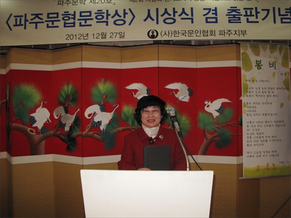 (»ç)Çѱ¹¹®ÀÎÇùȸÆÄÁÖÁöºÎ(ÁöºÎÀå º¯Àμ÷)´Â 27ÀÏ Áß¾Ó¿þµùȦ¿¡¼ ÆÄÁÖ¹®ÇÐ 20È£ ÃâÆÇ±â³äȸ ¹× Á¦1ȸ ÆÄÁÖ¹®Çù ¹®Çлó ¼ö»ó½ÄÀ» °¡Á³´Ù. ÃÊ´ë ÆÄÁÖ¹®ÇùÁöºÎÀåÀ̾ú´ø À̵¿·û °í¹®Àº Á¦1ȸ ÆÄÁÖ¹®Çù ¹®Çлó ¼ö»ó ¹× ÆÄÁÖ¹®Çù ⸳20ÁÖ³â ÇѽÃÁý ¡®ÆÄÁÖ¿¹Âù, ¿¾±æ¿¡¼ Çѽø¦ ¸¸³ª´Ù¡¯ ÃâÆÇÀ» ȸ¿øµéÀÇ ÃàÇϸ¦ ¹Þ¾Ò´Ù. º¯Àμ÷ ȸÀåÀº ¹ß°£»ç¿¡¼ ¡°Ã¢¸³ 20ÁÖ³âÀ» ¸Â¾Æ ¿Á¤ÀÌ ³ÑÄ¡´Â û³â¿¡¼ ¼º³âÀ¸·Î ¹ßµ¸¿ò ÇÏ°Ô µÆ´Ù¡±¸ç ¡°¹®ÇÐÀÇ º¼¸ðÁö¿¡ ¿°ú ¼ºÀ» ´ÙÇØ ½ÏÀ» Æ·¿î ⸳ȸ¿ø°ú ¿ª´ë ȸÀå ¹× È¸¿øµé¿¡°Ô °¨»ç µå¸°´Ù¡±°í ¸»Çß´Ù.(»çÁø) ¶Ç ÆÄÁֽùΠ»ç¶ûÀÇ ÆíÁö¾²±â°ø¸ðÀÛǰÁý ¡®¸¶À½À¸·Î ¾²´Â ÆíÁö¡¯¿Í ±è¿µ±æ ºÎȸÀåÀÇ ¡®º½³¯¿¡ ´Ù½Ã °È´Ù¡¯¿Í ¹ÚÈÆ ȸ¿øÀÇ ¡®À̽½ºñ ¼ÓÀÇ ¾ç±Íºñ È¿ø¡¯ ½ÃÁý Ãâ°£µµ ȸ¿øµéÀÇ ÃàÇϸ¦ ¹Þ¾Ò´Ù. ƯÈ÷ ±è¿µ±æ ºÎȸÀåÀº À̳¯ ¿À·£ °øÁ÷»ýȰÀ» ¸¶Ä¡°í ÅðÀÓ½ÄÀ» ÇÑ ³¯À̱⵵ ÇØ¼ °¨È¸¸¦ ´õÇß°í ¹ÚÈÆ ½ÃÀÎÀº ³úÃâÇ÷·Î Åõº´, ÀçȰ »ýȰ Áß ³½ ½ÃÁýÀ̶ó ¶ß°Å¿î ¹Ú¼ö¸¦ ¹Þ¾Ò´Ù. ⸳ 20Áֳ⿡ dz¼ºÇÑ ¹®ÇÐ ¼öÈ®À» °ÅµÐ ÆÄÁÖ¹®ÇùÀº ¸Å³â ÆÄÁÖ¹®ÇÐÀ» ¹ß°£ÇØ Áö¿ª¹®ÇÐ È®Àå º¸±Þ¿¡ ¾ÕÀå¼ ¿ÔÀ¸¸ç ½Ã³¶¼Ûȸ, ¹®ÇбâÇà, °¢Á¾ ¹éÀÏÀå ÁÖÃÖ µîÀ¸·Î ¹®ÇÐÀα¸ Àúº¯È¿¡ ÁÖ¿ªÀ» ´ã´çÇß´Ù. ÇѼºÈñ ±âÀÚ