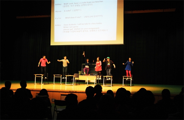 °ø¿¬¿¡ Âü°¡ÇÑ ¿ø¾î¹ÎÀº ÆÄÁÖÄ·ÇÁ¿¡¼­ ¹ÂÁöÄÃÀ» °ø¿¬ÇÏ´Â Àü¹® ¹è¿ìÀÌ¸ç ¿µ¾î±³»ç·Î ¹ÂÁöÄà ¡®³×°¡ ¾Æ¸§´Ù¿î ÀÌÀ¯(That's What Makes You Beautiful)¡¯À» ¿Ïº®ÇÑ ¹«´ë¸Å³Ê·Î ¼±º¸¿´´Ù. ¶ÇÇÑ °ü°´µé°ú Àαâ K-Pop ¡®°­³²½ºÅ¸ÀÏ¡¯ÀÇ ¸»ÃãÀ» ÇÔ²² Ãß°í ÈǶóÈÄÇÁ °ÔÀÓÀ» Áñ±â´Â ½Ã°£µµ ÁøÇàµÆ´Ù. °ø¿¬ ÈÄ¿¡´Â ¾Æµ¿µé°ú ¿µ¾î·Î ´ëÈ­ÇÏ°í ±â³ä»çÁøµµ Âï´Â ½Ã°£µµ ¸¶·ÃµÆ´Ù.