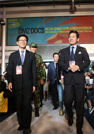 ¼¼°è À¯ÀÏÀÇ ºÐ´Ü Áö¿ªÀÎ DMZ¸¦ ÅëÇØ ÆòÈ­¿Í °øÁ¸ÀÇ À̹ÌÁö¸¦ µÇ»õ±â´Â ±¹³» À¯ÀÏÀÇ ±¹Á¦´ÙÅ¥¸àÅ͸® ¿µÈ­Á¦ °³¸·½Ä¿¡´Â ±è¹®¼ö Á¶Á÷À§¿øÀå(°æ±âÁö»ç) ÀÌÀÎÀç Á¶Á÷À§ºÎÀ§¿øÀå(ÆÄÁÖ½ÃÀå) Á¶ÀçÇö ÁýÇàÀ§¿øÀå µîÀÌ Âü¼®Çß´Ù.