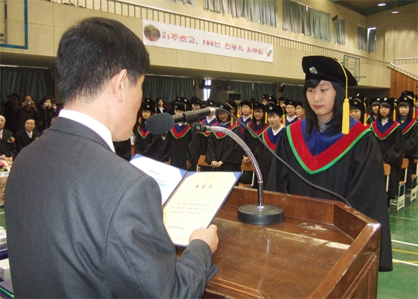 ÆÄÁÖÁö¿ª ÃÖ°íÀÇ ¿ª»ç¸¦ ÀÚ¶ûÇÏ´Â ÆÄÁÖÃʵîÇб³(±³Àå Ȳ´ö¼ø) Á¦100ȸ Á¹¾÷½ÄÀÌ 12ÀÏ Çб³ °­´ç¿¡¼­ ¼ºÈ²¸®¿¡ ¿­·È´Ù.