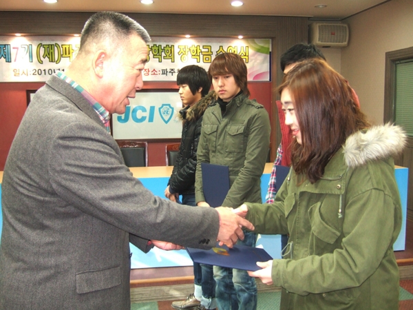 (Àç)ÆÄÁÖµ·Àç°©ÁøÀåÇÐȸ(ÀÌ»çÀå ±è°©Áø) Á¦7±â ÀåÇÐ±Ý Àü´Þ½ÄÀÌ 27ÀÏ ¿ÀÈÄ ±ÝÃ̵¿ ÆÄÁÖJC»ç¹«±¹¿¡¼­ ¿­·È´Ù.