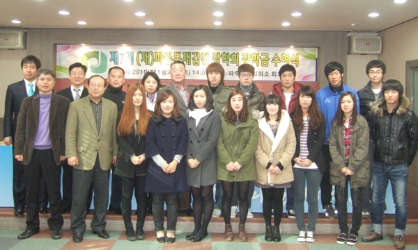 ÆÄÁÖÁö¿ª ÃÖ°í ±ÇÀ§ÀÇ ÀåÇÐȸ·Î ÀÔÁö¸¦ ±»È÷°í ÀÖ´Â ÀåÇÐȸ´Â Áö³­ 2004³â 3¿ù, ÆÄÁÖÃà»êÀ» ¿î¿µÇÏ´ø ±è°©Áø ¼±»ýÀÌ Áö¿ªÀÎÀç À°¼ºÀ» À§ÇØ »çÀç 20¾ï¿øÀ» Åоî ÀåÇÐȸ¸¦ ¼³¸³ÇÑ ÀÌ·¡ ¿ÃÇØ 7±â±îÁö ´ëÇлý 60¿©¸í, °íµîÇлý 500¿©¸í¿¡°Ô ÀåÇÐ±Ý 5¾ï6õ580¸¸¿øÀ» Àü´ÞÇß´Ù.