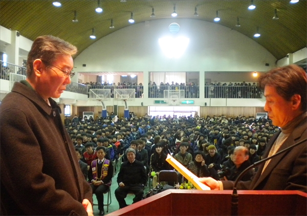 Áö³ 9ÀÏ À²°îÁßÇб³(±³Àå À̺´È£) Á¹¾÷½Ä¿¡¼´Â ÀÇ¹Ì ÀÖ´Â Á¹¾÷Àå Àü´Þ½ÄÀÌ ¿·È´Ù. À̳¯ À̺´È£ ±³Àå¿¡°Ô ÁßÇб³ Á¹¾÷ÀåÀ» ¹ÞÀº °ºÀö(57)¾¾´Â 41³â ¸¸¿¡ Æò»ý ÇÑÀÌ µÇ¾î ³²¾ÆÀÖ´ø ¼Ò¿øÀ» ÀÌ·ðÀ¸¸ç µ¿Ã¢»ý À̺´ÁØ(57)¾¾µµ Á¹¾÷ÀåÀ» Àü¼ö¹Þ¾Ò´Ù. Áö³ 1968³â À²°îÁßÇб³¿¡ ÀÔÇÐÇß´ø ° ¾¾¿Í ÀÌ ¾¾´Â °¡Á¤ÇüÆíÀ¸·Î µî·Ï±ÝÀÌ ¹Ð¸®ÀÚ ³¡³» Á¹¾÷ÀåÀ» ¹ÞÁö ¸øÇÏ°í ±³¹®À» ³ª¼¾ß Çß´Ù. "´ç½Ã º´ÁØÀÌ¿Í ¿õ´ã¸® Á¤³²Ãʱ³(Çö ¿õ´ãÃʱ³)¸¦ Á¹¾÷ÇÏ°í ¿ï°îÁßÇб³¿¡ ÁøÇÐÇߴµ¥ 70³â´ë ÃÊ¹Ý ¹Ì±ºÃ¶¼ö°¡ ½ÃÀÛµÇ¸é¼ °¡¼¼°¡ ±â¿ï¾îÁ³¾î¿ä. Á¹¾÷ÀåÀÌ ¾øÀ¸´Ï µ¿Ã¢È¸ ¿À±âµµ ²¨·ÁÁ³´Âµ¥ ÀÌÁ¨ ´ç´çÇÏ°Ô Âü¼® ÇÒ °Å¿¹¿ä." '´ç´çÈ÷ µ¿Ã¢È¸¿¡ °¡°í ½Í´Ù'¸ç Á¹¾÷ÀåÀ» ¸ø ¹ÞÀº ¼·¯¿òÀ» Åбâ±îÁö ±ä ¼¼¿ùÀ» ȸ°íÇÏ´Â ° ¾¾ÀÇ »ç¿¬Àº ¾î·Á¿ü´ø ½Ã´ëÀÇ ±×¸²ÀÚ¸¦ º¸¿©ÁÖ´Â µíÇß´Ù. À̺´È£ ±³ÀåÀÌ À̵éÀÇ »ç¿¬À» ¾È °ÍÀº ° ¾¾¿Í µ¿Ã¢»ýÀÎ ÀÌÁø µÎÀÏÁßÇб³ ±³Àå¿¡°Ô "±¸Á¦ ¹æ¹ýÀÌ ¾ø°Ú´Â°¡"´Â ºÎŹÀ» ¹Þ°í¼¿´´Ù. Çб³ ÃøÀÌ ±³À°°úÇбâ¼úºÎ¿¡ ¹®ÀÇÇÑ °á°ú, "ÆÇ·Ê¸¦ º¸¸é ¹Ð¸° ¼ö¾÷·á¸¦ ³»¸é (Á¹¾÷ÀåÀ») ÁÙ ¼ö ÀÖ´Ù"´Â ´äº¯À̾úÀ¸³ª ¶Ç ´Ù¸¥ ³°ü¿¡ ºÎµúÇû´Ù. ÇöÀç´Â ÁßÇб³ ¹«»ó±³À°Á¦µµ°¡ ½ÃÇàµÇ°í ÀÖ¾î µî·Ï±ÝÀ» ¹ÞÀ» ¼ö°¡ ¾ø´Â °ÍÀÌ´Ù. µÎ »ç¶÷¿¡°Ô ²À Á¹¾÷ÀåÀ» ¼ö¿©ÇÏ°í ½Í¾ú´ø ÀÌ ±³ÀåÀº, ¿ø·¡(14ȸ) Á¹¾÷»ýÀ¸·Î´Â Á¹¾÷Àå ¼ö¿©°¡ ºÒ°¡´ÉÇÏÁö¸¸ ¿ÃÇØ(55ȸ) Á¹¾÷»ýÀ¸·Î´Â °¡´ÉÇÏ´Ù´Â ¹æ¹ýÀ» ã¾Æ³Â´Ù. "Çлý±â·ÏºÎ¸¦ º¸´Ï °ºÀö¾¾´Â Áö°¢À̳ª °á¼® Çϳª ¾ø´Â ¼º½ÇÇÑ ÇлýÀ̾ú´õ¶ó°í¿ä. À̺´Áؾ¾´Â °¡Á¤ »çÁ¤¶§¹®¿¡ 6ÀÏ °á¼®Çß°í¿ä. ±×·¡¼ ²À Á¹¾÷ÀåÀ» ¹Þ°ÔÇÏ°í ½Í¾ú¾î¿ä." À²°îÁß°íµîÇб³ Á¹¾÷½ÄÀÌ ½ÃÀÛµÇ°í ¼ö½Ê³â ¼¼¿ùÀ» Áö³ª ÈĹèµé ¾Õ¿¡ ¼± °¾¾´Â ¼ö¹é¸íÀÇ Çлý°ú ÇÐºÎ¸ð¿¡°Ô ¹Ú¼ö°¥Ã¤¸¦ ¹ÞÀ¸¸ç À̺´È£ ±³Àå¿¡°Ô ²Þ¿¡ ±×¸®´ø Á¹¾÷ÀåÀ» ǰ¿¡ ¾È¾Ò´Ù.