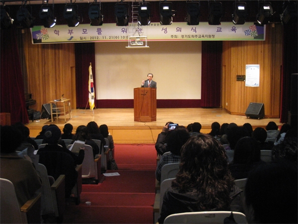 °æ±âµµÆÄÁÖ±³À°Áö¿øÃ»(±³À°Àå ±è¹®¼º)Àº 21ÀÏ ±³À°¹®È­È¸°ü¿¡¼­ ÃÊÁß°í±³ Çкθð 150¸íÀÌ Âü¼®ÇÑ °¡¿îµ¥ ¡®ÇкθðµéÀÇ ¿Ã¹Ù¸¥ ¼º ÀÇ½Ä ¸¶ÁÖÇϱ⡯¸¦ ÁÖÁ¦·Î ¿¬¼öȸ¸¦ °¡Á³´Ù.