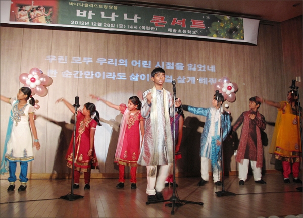 Àεµ ºó¹Î°¡ÀÇ ¾î¸°À̵é·Î ±¸¼ºµÈ ¹Ù³ª³ª¾î¸°ÀÌÇÕâ´Ü(´ÜÀå °â ÁöÈÖÀÚ ±èÀçâ)ÀÌ 28ÀÏ ÇØ¼ÖÃʵîÇб³(±³Àå ±èÀϵÎ) ½Ãû°¢½Ç¿¡¼­ ³»ÇѰø¿¬À» ÆîÃÆ´Ù.