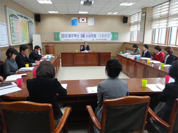 ÆÄÁÖ±³À°Áö¿øÃ»(±³À°Àå ±è¹®¼º)Àº 13ÀÏ È¸Àǽǿ¡¼ Çõ½Å±³À° ÀϹÝȸ¦ À§ÇÑ ¼ÒÅë°ú °ø°¨À» À§ÇØ ÆÄÁÖÇõ½Å ¡®¼ÒÅë äñ±æ¡¯ ¼ö¿äÆ÷·³À» °³ÃÖÇß´Ù. ¼ö¿äÆ÷·³¿¡¼´Â ¡®Çõ½Å±³À° ÀϹÝÈ ¾î¶»°Ô ÇÒ °ÍÀΰ¡¡¯¶ó´Â ±âÁ¶¹ßÇ¥¿¡ À̾î Çõ½ÅÇб³ ½ÃÁð2 ´ëºñ¸¦ À§ÇÑ Çٽɻç¾÷ °úÁ¦¿¡ ´ëÇÑ ÀÚÀ¯Åä·ÐÀÌ ½Ç½ÃµÆ´Ù. ÆÄÁÖ±³À°Áö¿øÃ»Àº ¿ÃÇØ ¡®Çõ½Å±³À° ÀϹÝÈ¡¯ÀÇ ÇØ¸¦ ¸Â¾Æ Çõ½Å±³À°¼º°ú¸¦ Á¡°ËÇϰí, ±³À° ÁÖü °£ ¼ÒÅëÀ» °ÈÇϱâ À§ÇØ ¼ö¿äÆ÷·³À» °³ÃÖÇϰí ÀÖ´Ù. ¼ö¿äÆ÷·³¿¡¼ ±è¹®¼º ±³À°ÀåÀº ¡°Çõ½ÅÇб³ ½ÃÁð2¸¦ ¸Â¾Æ Âü¿©¿Í ¼ÒÅëÀ¸·Î ¡®¾Í¡¯À» °øÀ¯Çϰí Áý´ÜÁö¼ºÀÇ Çù·ÂÀûÀÌ°í »ý»êÀûÀÎ ÆÄÁÖ±³À°¹®È Á¶¼ºÀ¸·Î ÇູÇÑ ÆÄÁÖ±³À°Çõ½ÅÀ» ÀÌ·çÀÚ.¡±°í ´çºÎÇß´Ù.