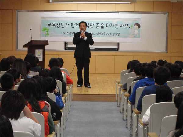 ÀÓÁøÃʵîÇб³(±³Àå Ȳ´ö¼ø)´Â 6ÀÏ ´Ù¸ñÀû½Ç¿¡¼ ±è¹®¼º ÆÄÁÖ±³À°Áö¿øÃ» ±³À°ÀåÀ» ÃÊû, ¡®±³À°Àå´Ô°ú ÇÔ²² ÇູÇÑ ²ÞÀ» µðÀÚÀÎÇØ¿ä¡¯¶ó´Â ÁÖÁ¦·Î 6Çгâ Çлý´ë»ó Áø·Î±³À°À» ½Ç½ÃÇß´Ù. Áø·Î±³À°Àº ±³À°Àå ±³À°Ã¶Çаú ±³À°´ëÇÑ ¿Á¤°ú °æÇè, ¾ÆÀ̵鿡 ´ëÇÑ »ç¶ûÀ» Á߽ɹÙÅÁÀ¸·Î 50¿©ºÐ µ¿¾È, ²Þ°ú Èñ¸Á, ÇູÇÑ »î¿¡ ´ëÇÑ ÁøÁöÇÑ À̾߱⸦ ³ª´³´Ù. ±³À°¿¡¼ ±è¹®¼º ±³À°ÀåÀº ¡°10,000¸íÀÇ Çлý¿¡°Ô´Â 10,000°³ÀÇ ²ÞÀÌ ÀÖ´Ù¡±¸é¼ ¡°¸ðµç ÇлýµéÀÌ ÀÚ½ÅÀÇ ¼ÒÁú°ú Ư±â¸¦ »ì·Á ÇÏ°í ½ÍÀº ÀÏÀ» ²ÞÀ¸·Î °£Á÷Çϱ⸦ ¹Ù¶õ´Ù¡±°í ´çºÎÇß´Ù. ±³À°¿¡ Âü¿©ÇÑ ÀÌÁ¤¼· ÇлýÀº ¡°°øºÎ¸¦ ÀßÇØ¾ß°Ú´Ù´Â »ý°¢¸¸ ÇßÁö ´Ù¸¥ ²ÞÀº »ý°¢Çغ¸Áö ¾Ê¾Ò´Ù¡±¸ç ¡°±³À°Àå´Ô ¸»¾¸À» µè°í Àúµµ ÇØº¸°í ½ÍÀº ÀÏÀÌ »ý°å½À´Ï´Ù.¡±¸ç ¡°²ÞÀ» ¼ÒÁßÈ÷ ¿©±â°Ú´Ù¡±°í ¸»Çß´Ù. Áø·Î±³À°À» ÁÖ°üÇÑ È²´ö¼ø ±³ÀåÀº ¡°¾ÆÀ̵éÀº ²ÞÀ» Ű¿ì°í ²ÞÀ» ¸¸µé¸ç Çູ ÇÏ°Ô »ç´Â °ÍÀÌ Áß¿äÇÏ´Ù¡±¸ç ¡°ÀÓÁøÃʱ³´Â Çູ¹ßÀü¼Ò¶ó »õ·Ó°Ô À̸§ Áþ°í ¾ÆÀ̵éÀÇ ²Þ°ú ÇູÀ» À§ÇØ ³ë·ÂÇÒ °Í¡±À̶ó°í ¹àÇû´Ù.