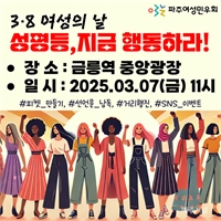 ÆÄÁÖ¿©¼º¹Î¿ìȸ ¡®3*8 ¼¼°è¿©¼ºÀÇ ³¯¡¯ ±â³ä½Ä ¼º·á¡®àõÆòµî, Áö±Ý ÇൿÇÏ¶ó¡¯ ¶ß°Å¿î ÇÔ¼º, ±¤ÀåÀ» ¿ï¸®´Ù¿©¼º ºÒÆòµî À庮 ¸Â¼ ½Î¿ö-ÀÛ°Ô ÆÄÁÖ¿©¼º¹Î¿ìȸ(ȸÀå...