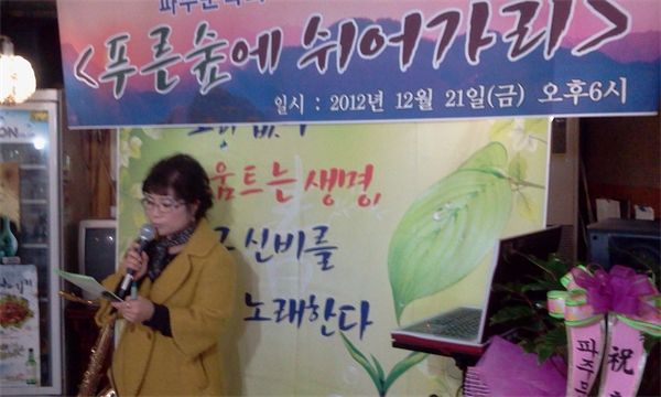 ÆÄÁÖ¹®ÇÐÀ» °ßÀÎÇϰí ÀÖ´Â ÆÄÁÖ¹®ÇÐȸ(ȸÀå °­±Ù¼÷) µ¿ÀÎÁö 'ÀÛÀº ±Û ¶ã¡® 24¹øÂ° ÀÛǰÁý 'Ǫ¸¥ ½£¿¡ ½¬¾î°¡¸®' ÃâÆÇ±â³äȸ°¡ 21ÀÏ ±ÝÃ̵¿ ÇÑ À½½ÄÁ¡¿¡¼­ ¿­·È´Ù.
