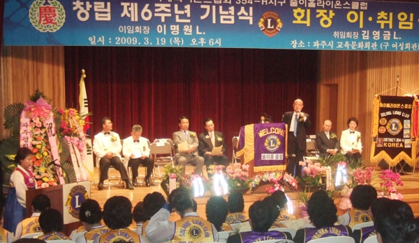 ¼úÀÌȦ¶óÀ̿½ºÅ¬·´ ⸳ 6Áֳ⠱â³ä½ÄÀ» °âÇÑ È¸Àå ÀÌ-ÃëÀÓ½ÄÀÌ 19ÀÏ ¿ÀÈÄ ±³À°¹®Èȸ°ü¿¡¼ ¼ºÈ²¸®¿¡ ¿·È´Ù. ±â³ä½Ä¿¡´Â ¹Ú±¤½Ä ±¹Á¦¶óÀο½º354-HÁö±¸ ÃÑÀç, ±èÁÖÀÏ Àü ÃÑÀç, ÀüÇà´Ô ÃÖ¼±¹Ì Àü ȸÀå µî ¶óÀ̾ð°ú ±â°ü´ÜüÀå 200¿©¸íÀÌ Âü¼®Çß´Ù.