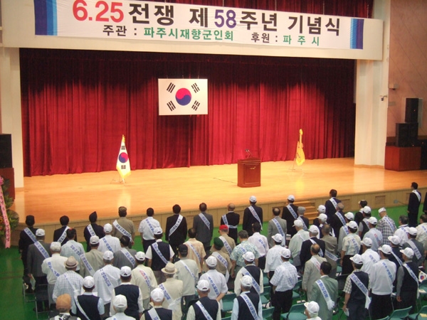 µ¿Á·»óÀÜÀÇ ºñ±Ø 6.25ÀüÀï ¹ß¹ß 58ÁÖ³â Çà»ç°¡ 25ÀÏ ½Ã¹Îȸ°ü ´ë°ø¿¬Àå¿¡¼­ ÀçÇⱺÀÎȸ ÆÄÁÖ½ÃÁöȸ(ÁöȸÀå À̱âÁØ) ÁÖÃÖ·Î ¿­·È´Ù.