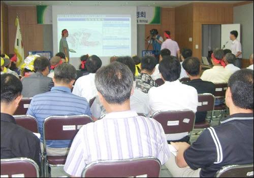 'ÆÄÁÖ±â»ê ´ëÁß°ñÇÁÀå Á¶¼º»ç¾÷ ȯ°æ¿µÇâÆò°¡¼(ÃʾÈ) Áֹμ³¸íȸ'°¡ 25ÀÏ ±¤Åº¸é»ç¹«¼Ò ȸÀǽǿ¡¼ ¿·ÈÀ¸³ª Âü¼®ÇÑ ±â»ê¸® ÁֹεéÀÇ Ç×ÀÇ·Î 30ºÐ¸¸¿¡ ÁߴܵƴÙ. ÁֹεéÀº "°ñÇÁÀåÀÌ µé¾î¼¸é ±â»ê¸®´Â °ñÇÁÀå¿¡ µÑ·¯½Î¿© ¸Ó¸® À§·Î °ñÇÁ °øÀÌ ³¯¾Æ´Ù´Ò °Í"À̶ó¸ç "Áö¿ªÁֹεéÀÇ ¾ÈÀüÇÑ »îÀ» º¸ÀåÇ϶ó"°í ÁÖÀåÇß´Ù. ¶Ç ÁֹεéÀº "¿ì¸®°¡ »ç´Â ÁÖÅà ¹Ù·Î À§¿¡ Àú·ùÁö¸¦ ¸¸µé¸é ȯ°æ ÆÄ±«´Â ¹°·Ð ºÒ¾ÈÇØ¼ ¾îÂî »ì°Ú´À³Ä"¸ç ÁÖ¹ÎÁÖ°Å´ëÃ¥ÀÌ º¸ÀåµÉ ¶§±îÁö '°ñÇÁÀå¹Ý´ë ¿îµ¿'¿¡ ³ª¼°Ú´Ù°í ¹àÇû´Ù. ¿Ã 10¿ù¿¡ Âø°ø ¿¹Á¤ÀÎ ±â»ê°ñÇÁÀåÀº ±â»ê¸® ÁÖº¯À» µÑ·¯½Î°í µé¾î¼°Ô µÅ ÇØ´çÁö¿ª 30¿© °¡±¸ ÁֹεéÀÇ °ÇÑ ¹Ý¹ß°ú ºÐ³ë¸¦ »ç°í ÀÖ´Ù. ±â»ê°ñÇÁÀå(18Ȧ)Àº (ÁÖ)³ë½ºÆÊÀÌ ±¤Åº¸é ±â»ê¸® ÀÏ¿ø 1,004,149§³ ¸éÀû¿¡ ÃÑ»ç¾÷ºñ 580¾ï¿ø µé¿© 2010³â 5¿ù ÁذøÇÒ °èȹÀÌ´Ù.