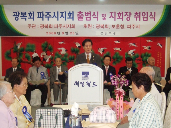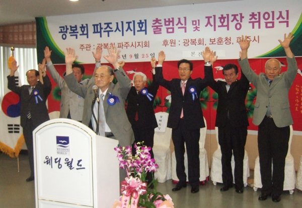 ±¤º¹È¸ ÆÄÁÖ½ÃÁöȸ(ÁöȸÀå À±°æ)°¡ 24ÀÏ ±ÝÃ̵¿ Çö´ë±ÝÃÌŸ¿ø 5Ãþ¿¡¼ Ãâ¹ü½ÄÀ» °®°í º»°Ý Ȱµ¿¿¡ ³ª¼¹´Ù. À̳¯ Ãâ¹ü½Ä¿¡´Â ½Âº´ÀÏ ±¤º¹È¸ ºÎȸÀå, ¼±Çر¹ ÀÇÁ¤ºÎº¸ÈÆÁöûÀå, ½ÅÃæÈ£ ½ÃÀÇȸ ÀÇÀå, Ȳ¿ë¼± ºÎ½ÃÀå, ÀåÁ¾ÇÏ ±³À°Àå, À±ÁÖÄ¥ »ó°øÈ¸ÀÇ¼Ò È¸Àå µî ±â°ü´ÜüÀå°ú ÀμøÃ¢ ¾Ö±¹Áö»ç¸¦ ºñ·ÔÇÑ µ¶¸³¿îµ¿ À¯°¡Á· µî 200¿©¸íÀÌ Âü¼®ÇÑ °¡¿îµ¥ ¼ºÈ²¸®¿¡ ¿·È´Ù. ƯÈ÷ Ãâ¹ü½Ä¿¡´Â À¯°ü¼ø¿»çÁ¤½Å¼±¾çȸ ÆÄÁÖÁöºÎ ¸¶Âî´Ù·ç¹Ì²¿ÁöºÎÀåÀÌ Âü¼®, ÀÌ並 ¶ì¾ú´Ù.