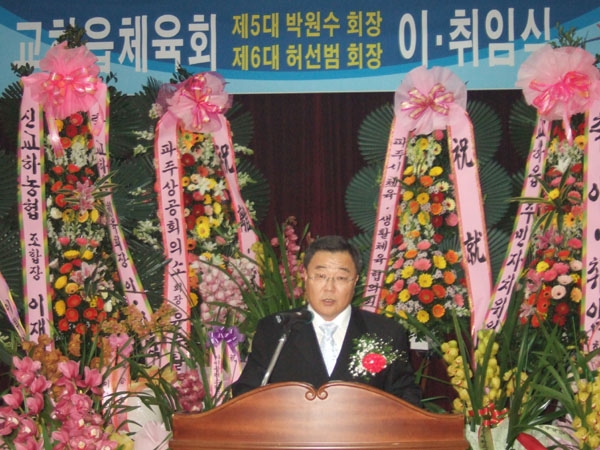 ±³ÇÏÀ¾Ã¼À°È¸Àå ÀÌ-ÃëÀÓ½ÄÀÌ 5ÀÏ ¿ÀÀü ½Å±³ÇϳóÇù ȸÀǽǿ¡¼ ¿·È´Ù. À̳¯ ÀÌ-ÃëÀӽĿ¡´Â Á¤µµ¶ô ¸í¿¹È¸Àå, ÀÌÀç½Ä ÀÌÈÆÀç Á¶º´´ö ÀåÈ£¿ ºÎȸÀå µî üÀ°È¸ °ü°èÀÚ¿Í È²±Ô¿µ ÁÖ¹ÎÀÚÄ¡À§¿øÀå, ¿ì¹ÎÁ¦ ÆÄÁÖ½ÃüÀ°È¸ Àü¹«ÀÌ»ç µî ±â°ü´ÜüÀå°ú ÁֹΠ200¿©¸íÀÌ Âü¼®, ¼ºÈ²À» ÀÌ·ð´Ù. Áö³ 2007³â, 4´ë ȸÀåÀ¸·Î ÃëÀÓÇϰí ÀÌÀÓÇÏ´Â ¹Ú¿ø¼ö ȸÀåÀº "Àӱ⵿¾È µçµçÇÑ ÈÄ¿øÀÚ ¿ªÇÒÀ» ÇØÁØ ÀÓ¿øÁø¿¡°Ô ±íÀº °¨»ç¸¦ µå¸°´Ù"¸é¼ "Áö¿ªÃ¼À°¹ßÀü¿¡ ¸¹Àº °ü½É°ú ÁøÃëÀûÀÎ »ç°í¸¦ °¡Áø ½ÅÀÓ È¸ÀåÀ» Áß½ÉÀ¸·Î (±³ÇÏÀ¾ÀÌ) ¿À´Â 4¿ù ½Ã¹ÎüÀ°´ëȸ¿¡¼ ÁÁÀº ¼ºÀûÀ» °ÅµÖ´Þ¶ó"°í ´çºÎÇß´Ù. ±³ÇÏÀ¾ üÀ°È¸¸¦ À̲ø Çã¼±¹ü ȸÀåÀº ÃëÀӻ縦 ÅëÇØ "ÀüÀÓ È¸Àå´ÜÀÇ ³ë°í¿¡ °í¸¶¿òÀ» ÀüÇÑ´Ù"¸é¼ "Áö¿ªÁֹΠÂü¿©°¡ ÀÌ·ïÁö´Â ´ÜÇÕµÈ Ã¼À°È¸¸¦ ¸¸µé°í ȸ¿ø¹è°¡¿îµ¿À» ÆîÃÄ Ã¼À°ÀÎÀÇ Ã¼À°È¸¸¦ ¸¸µé°Ú´Ù"°í ÃëÀÓ¼Ò°¨À» ¹àÇû´Ù. Çã ȸÀåÀº ¶Ç "üÀ°½Ã¼³À» Á¶±â¿¡ ¸¶·ÃÇÏ´Â µî ¼±µµÀûÀΠüÀ°È¸¸¦ ¸¸µé°Ú´Ù"°í µ¡ºÙ¿´´Ù. ½ÅÀÓ Çã¼±¹ü ȸÀåÀº ±³ÇÏÁßÇб³ Ãѵ¿¹®È¸Àå, üÀ°È¸ Àü¹«ÀÌ»ç µîÀ» ¿ªÀÓÇß´Ù.
