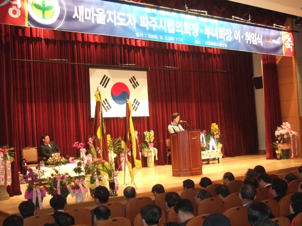 ÆÄÁֽûõ¸¶À»ÁöµµÀÚÇùÀÇȸÀå ¹× ºÎ³àȸÀå ÀÌ-ÃëÀÓ½ÄÀÌ 3ÀÏ ¿ÀÀü ½Ã¹Îȸ°ü ¼Ò°ø¿¬Àå¿¡¼ ¼ºÈ²¸®¿¡ ¿·È´Ù. Çà»ç¿¡´Â ·ùȼ± ½ÃÀå, ½ÅÃæÈ£ ½ÃÀÇȸ ÀÇÀå, ±è±¤¼± Àӿ쿵 Á¶º¹·Ï µµÀÇ¿ø, ¹ÎŽ ¹®È¿øÀå µî ±â°ü´ÜüÀå°ú ÃÖÀ¯¼· »õ¸¶À»È¸Àå µî »õ¸¶À»°¡Á· 300¿©¸íÀÌ Âü¼®Çß´Ù.