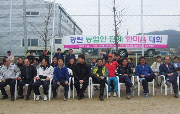 ±¤Åº¸é ³ó¾÷ÀδÜü ÇѸ¶À½´ëȸ°¡ 22ÀÏ ¹æÃฮ üÀ°°ø¿ø¿¡¼ ±¤Åº¸é»õ¸¶À»ÁöµµÀÚÇùÀÇȸ ÁÖ°üÀ¸·Î ¼ºÈ²¸®¿¡ ¿·È´Ù. À̳¯ ´ëȸ¿¡´Â ±¤Åº¸é ³óÃÌÁöµµÀÚȸ, ±¤Åº¸é³ó¾÷°æ¿µÀÎÇùÀÇȸ, ±¤Åº³óÇù µî 4°³ ³ó¾ü°ü·Ã ´Üü°¡ Âü¿©Çß´Ù. ´ëȸ¸¦ ÁÖÃÖÇÑ À̼º¿í »õ¸¶À»ÁöµµÀÚÇùÀÇȸÀåÀº Àλ縻¿¡¼ "³ó¾÷ÀÌ °¡Àå Áß¿äÇÑ »ê¾÷ÀÎ Áö¿ª¿¡¼ ³ó¹ø±â¸¦ ¾ÕµÎ°í ³ó¾÷°ü°èÀÚµéÀÌ Ã౸°æ±â µîÀ» ÅëÇØ Ä£¸ñÀ» µµ¸ðÇϱâ À§ÇØ Çà»ç¸¦ ¸¶·ÃÇß´Ù"¸é¼ "¿ÃÇØµµ dz³â³ó»ç¸¦ ±â¿øÇϰí Áö¿ªÈÇÕÀ» À§ÇØ ³ë·ÂÇÏÀÚ"°í ´çºÎÇß´Ù. ¹éÁ¶Çö ±¤Åº³óÇù Á¶ÇÕÀåÀº Ãà»ç¿¡¼ "³ó¾÷À» ÁöÄѳª°¡´Â ³ó¾÷ÀÎÀÇ ¿ªÇÒÀÌ ¸Å¿ì Áß¿äÇÑ ½ÃÁ¡"À̶ó°í °Á¶Çϰí "¾î·Á¿î ½Ã±â¸¦ ±Øº¹Çϱâ À§Çؼ´Â ¼±Áø ³ó¾÷ °æ¿µÀ» µµÀÔÇÏ°í ³ó¾÷ÀεéÀÇ ±³·ù°¡ ÇÊ¿äÇÏ´Ù"°í ¸»Çß´Ù. ³ó¹ø±â¸¦ ¾ÕµÎ°í ÇØ¸¶´Ù ¿¸®´Â ³ó¾÷ÀδÜü ÇѸ¶À½´ëȸ´Â ³ó»çÁغñ¿¡ ¹Ù»Û ³ó¾÷ÀεéÀÌ ¸ð¿© Ã౸°æ±â·Î ü·ÂÀ» ´ÙÁö°í À½½ÄÀ» ÇÔ²² ³ª´©¸ç Á¤º¸¸¦ ±³·ùÇÏ´Â ÀÚ¸®·Î ½ÃÁ¾ ȱâ¾Ö¾ÖÇÑ ½Ã°£ÀÌ µÆ´Ù. ÇѼºÈñ ±âÀÚ