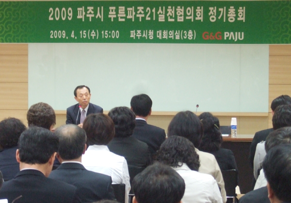 Ǫ¸¥ÆÄÁÖ21½ÇõÇùÀÇȸ Á¤±âÃÑȸ°¡ 15ÀÏ ½Ãû ȸÀǽǿ¡¼ ¿·È´Ù. Á¤±âÃÑȸ¿¡´Â ·ùȼ± ½ÃÀå, ½ÅÃæÈ£ ½ÃÀÇȸ ÀÇÀå µî ´ç¿¬Á÷ °øµ¿´ëÇ¥¸¦ ºñ·ÔÇØ À§¿ø 90¿©¸íÀÌ Âü¼®Çß´Ù. À±ÁÖÄ¥ »ó°øÈ¸ÀÇ¼Ò È¸Àå ÁÖÀç·Î ¿¸° »óÀÓ´ëÇ¥ ¼±ÃâȸÀÇ¿¡¼ À§¿ø ´Üµ¶À¸·Î ÃßõÀ» ¹ÞÀº À̰æÇü À§¿øÀÌ ¸¸ÀåÀÏÄ¡·Î ¼±ÃâµÆ´Ù. ¼Á¤±¹ ³²±¤¼ø À§¿øÀº °¨»ç·Î ¼±ÀӵƴÙ. Ǫ¸¥ÆÄÁÖ21½ÇõÇùÀÇȸ(ÀÌÇÏ ÇùÀÇȸ)¸¦ À̲ø À̰æÇü »óÀÓ´ëÇ¥´Â Àü ¼¿ï½Å¹® ÆíÁý±¹Àå Ãâ½ÅÀ¸·Î ÇѾç´ë ¾ð·ÐÁ¤º¸´ëÇпø °âÀÓ±³¼ö¸¦ Áö³ÂÀ¸¸ç ÇöÀç ³»ÀϽŹ® Ä®·³¸®½ºÆ®·Î Ȱµ¿Çϰí ÀÖ´Ù. À̰æÇü »óÀÓ´ëÇ¥´Â "À¯¿£È¯°æ°³¹ßȸÀǰ¡ äÅÃÇÑ ¾ÆÁ¨´Ù21ÀÇ Á¤½Å¿¡ µû¶ó ȸ¿øµé°ú ÇÔ²² Çൿ¸ñÇ¥¿Í ½Çõ°èȹÀ» ¼ö¸³, ½Ã¹Î°ú ±â¾÷, ÇàÁ¤±â°üÀÌ ½ÇÃµÇØ¾ß ÇÒ °úÁ¦¸¦ ¿¬±¸-¹ßÀü½ÃÄÑ ¹Ì·¡¼¼´ëÀÇ ¿å±¸¸¦ ÃæÁ·ÇÒ ¼ö ÀÖ´Â ´É·Â°ú ¿©°ÇÀ» ¸¸µé¾î ³ª°¡°Ú´Ù"°í ´ç¼±¼Ò°¨À» ¹àÇû´Ù. ÇùÀÇȸ´Â °ú°Å¿Í ´Þ¸® À§¿ø ¼ö¸¦ Àý¹ÝÀ¸·Î Ãà¼ÒÇßÀ¸¸ç ºÒÇÊ¿äÇÑ »ç¾÷À» ¾ø¾Ö´Â µî »õ·Î¿î ¸ð½ÀÀ¸·Î Å»¹Ù²ÞÇϰí Á¤ºÎÁ¤Ã¥ÀÎ 'Àúź¼Ò ³ì»ö¼ºÀå' ±âÁ¶¿¡ ¸ÂÀº »ç¾÷À» ÃßÁøÇØ ³ª°¥ °èȹÀÌ´Ù. ÇùÀÇȸ´Â ÀÚ¹®À§¿øÈ¸, ¿î¿µÀ§¿øÈ¸·Î ±¸¼ºµÆÀ¸¸ç À§¿øµéÀº ÀÚ¿¬»ýźаú, µµ½Ã»ýȰȯ°æºÐ°ú, ±³À°¿©¼ººÐ°ú µî 3°³ ºÐ°ú¿Í È«º¸ µîÀ» ´ã´çÇÏ´Â T/FÆÀ¿¡¼ Ȱµ¿ÇÏ°Ô µÈ´Ù. ¿øÈñ°æ ±âÀÚ