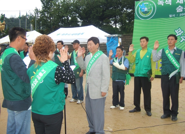 '³ì»ö »õ¸¶À»¿îµ¿ ¼±Æ÷½Ä'ÀÌ 21ÀÏ Àå°î¸® üÀ°°ø¿ø¿¡¼ ÆÄÁֽûõ¸¶À»È¸ ÁÖÃÖ·Î »õ¸¶À»ÁöµµÀÚȸ, »õ¸¶À»ºÎ³àȸ µî »õ¸¶À»°¡Á· 500¿©¸íÀÌ Âü¼®ÇÑ °¡¿îµ¥ ¼ºÈ²¸®¿¡ ¿·È´Ù. 'ÆóÀÚ¿ø ¸ðÀ¸±â °æÁø´ëȸ'¸¦ °âÇØ ¿¸° Çà»ç¿¡´Â ÃÖÀ¯¼· »õ¸¶À»È¸ÀåÀ» ºñ·ÔÇÑ »õ¸¶À»°¡Á·, ·ùȼ± ½ÃÀå, ½ÅÃæÈ£ ½ÃÀÇȸ ÀÇÀå, Àӿ쿵 °æ±âµµÀÇ¿ø µî ±â°ü´ÜüÀåÀÌ Âü¼®, ÃàÇÏÇß´Ù. ´ëȸ¿¡¼ ÃÖÀ¯¼· ȸÀåÀº ´ëȸ»ç¸¦ ÅëÇØ "¼¼°è´Â Áö±Ý Áö±¸¿Â³È¿¡ µû¸¥ ±â»óÀ̺¯ µîÀ¸·Î °®°¡Áö Àç¾ÓÀ» ¸·±â À§ÇØ Àúź¼Ò ³ì»ö¿îµ¿À» Àü°³Çϰí ÀÖ´Ù"¸é¼ "ÆóÀÚ¿ø ¸ðÀ¸±â´Â ³ì»ö »õ¸¶À»¿îµ¿ÀÇ ¼±µÎ ÁÖÀڷμ ¿ªÇÒÀ» ÃæºÐÈ÷ Çϰí ÀÖ´Ù"°í ¸»Çß´Ù. ÃÖ È¸ÀåÀº ¶Ç "³ì»ö »õ¸¶À»¿îµ¿Àº ±¹°¡¸¦ ºñ·ÔÇØ ¹ÎÁ·°ú ÈļÕÀ» À§ÇÏ°í ´õºÒ¾î »ì¾Æ°¡´Â °øµ¿Ã¼ Á¶¼ºÀÇ ¹Ø¹ÙÅÁÀ¸·Î ´õ¿í Ȱ¼ºÈµÇµµ·Ï ³ë·ÂÇÏÀÚ"°í °Á¶Çß´Ù. À̳¯ »õ¸¶À»°¡Á·µéÀº '³ì»ö »õ¸¶À»¿îµ¿ ½ÇõÀ» À§ÇÑ ¼±¾ð'À» ÅëÇØ 'Àúź¼Ò ³ì»ö¼ºÀåÀÌ ±¹°¡¹ßÀü°ú ¹Ì·¡»ýÁ¸ÀÇ »õ·Î¿î ºñÀüÀÓÀ» ÀνÄÇÏ°í ¿Â½Ç°¡½º °¨Ãà°ú ÇÏõ »ì¸®±â¸¦ À§ÇØ (³ì»ö »õ¸¶À»¿îµ¿À») ¹ü±¹¹Î »ýȰ¿îµ¿À¸·Î ÃßÁøÇϰڴÙ'°í ´ÙÁüÇß´Ù. ¶Ç '±×¸° ÆÄÁÖ Ä·ÆäÀÎ Àü°³' '21¼¼±â »ì±â ÁÁÀº ÆÄÁÖ¸¦ À§ÇÑ ³ì»ö¸¶À» ¸¸µé±â'¸¦ Àû±¹ ÃßÁøÅ°·Î Çß´Ù. ÇÑÆí »õ¸¶À»¿îµ¿ Ȱ¼ºÈ µî »õ¸¶À» ¹ßÀü¿¡ ±â¿©ÇÑ °øÀÌ ¸¹Àº ÇѱâÀÓ ¹®»êÀ¾ »õ¸¶À»ºÎ³àȸÀå µîÀÌ ½ÃÀåǥâÀ» ¹Þ¾ÒÀ¸¸ç ¹æ¸»À½ ÆÄÁÖÀ¾ ¹é¼®5¸® ºÎ³àȸÀå µîÀÌ »õ¸¶À»Áß¾ÓȸÀå »óÀ» ¹Þ¾Ò´Ù. ¶Ç À̼±¿Á Á¶¸®À¾ µî¿ø1¸® ºÎ³àȸÀå µîÀÌ ±¹È¸ÀÇ¿ø ǥâ, ÀÌÀçÀÏ ¹®»êÀ¾ ¼±À¯5¸® »õ¸¶À»ÁöµµÀÚ µîÀÌ ½ÃÀÇȸ ÀÇÀå ǥâ, Á¶±ÝÇö ¿ù·Õ¸é ´öÀº2¸® ºÎ³àȸÀå µîÀÌ ÆÄÁֽûõ¸¶À»È¸Àå ǥâÀ» °¢°¢ ¹Þ¾Ò´Ù. ¿øÈñ°æ ±âÀÚ