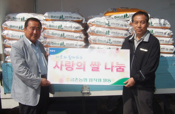±ÝÃ̳óÇù(Á¶ÇÕÀå ¾È±¤Çå)Àº 23ÀÏ ±ÝÃÌ1µ¿°ú ±ÝÃÌ2µ¿À» ¹æ¹®, '»ç¶ûÀÇ ½Ò' 108Æ÷(20kg)¸¦ Àü´ÞÇß´Ù. '»ç¶ûÀÇ ½Ò'Àº ³óÇù ÀÓÁ÷¿øµéÀÌ ¼Ò¿Ü°èÃþÀ» µ½±â À§ÇØ ½Ê½ÃÀϹÝÀ¸·Î ¸ð¾Ò´Ù. ¾È±¤Çå Á¶ÇÕÀåÀº "Á÷¿øµéÀÇ Á¤¼º°ú »ç¶ûÀÌ ´ã±ä ½ÒÀÌ ÀÌ¿ô¿¡°Ô Èñ¸Á°ú ¿ë±â°¡ µÇ±æ ¹Ù¶õ´Ù¸é¼ "´õºÒ¾î dz¿ä·Î¿î ÇѰ¡À§°¡ µÇ°í ¸ðµç °¡Á¤¿¡ ÇູÀÌ °¡µæÇÏ±æ ±â¿øÇÑ´Ù"°í ¸»Çß´Ù. '»ç¶ûÀÇ ½Ò'À» Àü´Þ¹ÞÀº ±â¿ì±Õ ±ÝÃÌ1µ¿ÀåÀº "»ç¶ûÀ» ÀüÇØÁØ ³óÇù Á÷¿ø¿¡°Ô °¨»ç¸¦ µå¸°´Ù"¸é¼ "(»ç¶ûÀÇ ½ÒÀº) °æ±âµµÆ¯¼ö ½ÃÃ¥»ç¾÷À¸·Î ÃßÁøµÇ°í ÀÖ´Â ¹«Çѵ¹º½´ë»ó °¡Á¤°ú Àú¼ÒµæÃþ °¡Á¤¿¡ ³ª´²ÁÙ °èȹ"À̶ó°í °í¸¶¿òÀ» ÀüÇß´Ù.