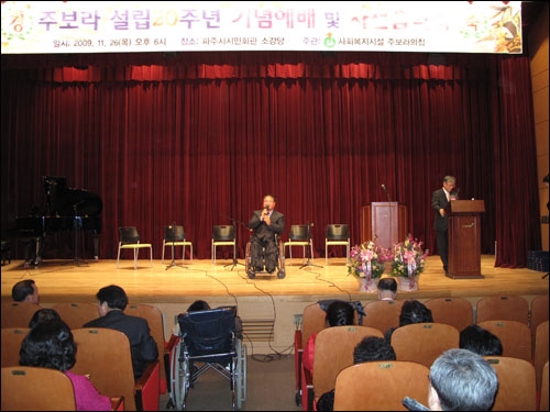 ÁßÁõÀå¾ÖÀÎ »çȸº¹Áö½Ã¼³ ÁÖº¸¶óÀÇ Áý(´ëÇ¥ ±è±¤½Ä ¸ñ»ç) ⸳ 20Áֳ⠱â³ä¿¹¹è ¹× ÀÚ¼±À½¾Çȸ°¡ 26ÀÏ ½Ã¹Îȸ°ü ¼Ò°ø¿¬Àå¿¡¼ ¿·È´Ù. ±â³ä¿¹¹è¿¡´Â ȲÁøÇÏ ±¹È¸ÀÇ¿ø, ½ÅÃæÈ£ ½ÃÀÇȸÀÇÀå, ½ÅÇöµ· 1»ç´ÜÀå, ȲÀǸ¸ ¹ÎÁ·ÅëÀÏ ÆÄÁÖ½ÃÇùÀÇȸÀå, Áø¿ë¿ì ÆÄÁֽú¹Áö»çÇùȸÀå µî ±â°ü´ÜüÀå°ú º¹Áö½Ã¼³ °ü°èÀÚ µî 200¿©¸íÀÌ Âü¼®ÇØ ¼ºÈ²À» ÀÌ·ð´Ù. Çà»ç¿¡¼ ÈÙü¾î¸¦ Ÿ°í ´Ü»ó¿¡ ¿À¸¥ ±è±¤½Ä ¸ñ»ç´Â Àλ縻À» ÅëÇØ ¡°ÁßÁõÀå¾ÖÀε鿡°Ô º¹À½À» ÀüÆÄÇϰڴٴ ¿Á¤À¸·Î ¸öºÎ¸²Ä¡´Ùº¸´Ï ¾î´Àµ¡ 20³âÀ̶ó´Â ¼¼¿ùÀÌ Èê·¶´Ù¡±¸ç ¡°ÀÌÁ¦´Â »çȸº¹Áö¹ýÀÎÀ» ¹Þ¾Æ Àå¾ÖÀε鿡°Ô Áú ÁÁÀº ÇÁ·Î±×·¥À¸·Î ´Ù°¡°¥ ¼ö ÀÖ´Â ½Ã´ë¸¦ ¿¾î¾ßÇÏÁö¸¸ ÀúÀÇ ÈûÀÌ ¹Ì¾àÇÏ´Ù¡±¸ç Çå½ÅÀûÀÎ »ç¶û°ú Àû±ØÀûÀÎ Âü¿©¸¦ ´çºÎÇß´Ù. ±â³ä¿¹¹è¿¡¼ Á¶±ÍÇö ´ë¿ø±³È¸ ¸ñ»ç´Â ¡°¹Ì·¡¸¦ À§ÇØ Çϳª´ÔÀÌ ÇϽô ÀÏÀº ÁÖº¸¶óÀÇ ÁýÀ» ÅëÇØ¼ ³î¶ó¿î ¾Æ¸§´Ù¿î ¿ª»ç·Î ³ªÅ¸³µ´Ù¡±°í ¼³±³ÇÏ°í ¡°¾î¶»°Ô ¾Æ¸§´Ù¿î »ç¶÷ÀÌ µÇ´Â°¡¡±¸¦ ¾Ë·ÁÁØ´Ù°í ¸»Çß´Ù. ÀÚ¼±À½¾Çȸ¿¡´Â º¹À½¼º°¡(ȲÀÎÇõ), ºÎäÃã(»óµ¿21¼¼±â±³È¸ ¹«¿ë¾ç´Ü), Âù¾ç(ºÀÀÏõ±³È¸ ¶óÆÄº´¿øÂù¾çÆÀ) µî ¾Æ¸§´Ù¿î Ãã°ú ¹«¿ëÀÌ ÆîÃÄÁ³´Ù. ÁßÁõÀå¾ÖÀεéÀÇ º¸±ÝÀÚ¸®ÀÎ ÁÖº¸¶óÀÇ ÁýÀº Á¤ºÎÁ¤Ã¥À¸·Î °³ÀÎ ½Å°í½Ã¼³·Î Àüȯ, 7¾ï¿øÀÇ ºúÀ» Áö°í ÀÖÀ¸¸ç ¿¬¸»±îÁö 2¾ï¿øÀ» º¯Á¦ÇØ¾ß ÇÏ´Â ¾î·Á¿î »óȲ¿¡ ³õ¿©ÀÖ´Ù. ÁÖº¸¶óÀÇ Áý õ»ç¿îµ¿ 1±¸Á 100¸¸¿ø °èÁ ³óÇù 213099-51-113220 ¿¹±ÝÁÖ ±è±¤½Ä(ÁÖº¸¶óÀÇÁý) ÇѼºÈñ ±âÀÚ