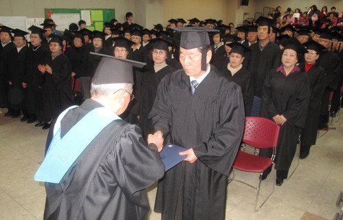 ´ëÇѳëÀÎȸ ÆÄÁÖ½ÃÁöȸ(ȸÀå ÀÌ¿ë¿ì) ºÎ¼³ ³ëÀδëÇÐ(ÇÐÀå ȲÀÇ·Ï) Á¦16±â Á¹¾÷½ÄÀÌ 25ÀÏ ³ëÀκ¹Áöȸ°ü ¹¶°Ô±¸¸§È¦¿¡¼ ·ùȼ± ½ÃÀå, ÀÌÈ£°æ ³ëÀκ¹Áöȸ°ü °üÀå µî ±â°ü´ÜüÀå°ú Á¹¾÷»ý, °¡Á·, Ä£Áö µîÀÌ Âü¼®ÇÑ °¡¿îµ¥ ¼ºÈ²¸®¿¡ ¿·È´Ù. À̳¯ Çлç¸ð¸¦ ¾²°í Á¹¾÷°¡¿îÀ» ÀÔÀº 113¸íÀÇ Á¹¾÷»ýÀº ´ÊÀº ³ªÀÌÁö¸¸ Áö³ 2³â°£ÀÇ Çо÷À» ¹«»çÈ÷ ¸¶Ä¡°í ÀÚ³à¿Í ¼ÕÀÚ*¼Õ³àµéÀÇ ¾Æ³¦¾ø´Â ÃàÇÏÀλ縦 ¹ÞÀ¸¸ç °¡½¿ ¹÷Âù Á¹¾÷½ÄÀ» ¸Â¾Ò´Ù. ·ùȼ± ½ÃÀåÀº Ãà»ç¿¡¼ ¡°Àλý¿¡¼ °¡Àå °ªÁø °æÇèÀÌÀÚ ÀÚ»êÀ» ³ëÀδëÇп¡¼ ½Àµæ, ÀΰÝÁö½Ä¿¡ ÃæºÐÈ÷ Ȱ¿ëÇØ ³ëÀμ±µµ¿Í Áö¿ª¹ßÀü¿¡ ¼Ö¼±¼ö¹üÇϱ⠹ٶõ´Ù¡±°í ÃàÇÏÇÏ°í ¡°³ëÀδëÇп¡ ÀÔÇÐÇϰíÀÚÇÏ´Â ¾î¸£½ÅµéÀÌ ³Ê¹« ¸¹¾Æ ´Ù ¹Þ¾ÆµéÀÌÁö ¸ø ÇÑ´Ù´Â ¼Ò½ÄÀÌ Àִµ¥ ¹è¿ì°íÀÚ ÇÏ´Â ºÐ¿¡°Ô ±âȸ¸¦ Á¦°øÇϱâ À§ÇØ ³ë·ÂÇϰڴ١±°í ¾à¼ÓÇß´Ù. ȲÀÇ·Ï ÇÐÀåÀº Àλ縻¿¡¼ ¡°2³â °£ ºüÁü¾øÀÌ ¼ö¾÷¿¡ Âü¿©, ¿À´Ã ¿µ±¤ÀÇ ÀÚ¸®¿¡ ¾ÉÀº ¿©·¯ºÐÀÌ ÀÚ¶û½º·´´Ù¡±¸ç ¡°°è¼Ó ¹è¿òÀÇ ²öÀ» ³õÁö ¸»¶ó¡±°í ´çºÎÇß´Ù. ÀÌ¿ë¿ì ÁöȸÀåµµ Ãà»ç¿¡¼ ¡°¹è¿ò¿¡ ³ªÀ̰¡ ¾øÀ¸´Ï Á¹¾÷ÀÌ ³¡ÀÌ ¾Æ´Ï°í Ãâ¹ß¼±¿¡ ¼ ÀÖ´Ù´Â ±àÁö¸¦ °¡Áö¶ó¡±°í °Ý·ÁÇß´Ù. À̳¯ Á¹¾÷½Ä¿¡¼ ¹é»ó±â Çлý´ëÇ¥°¡ »çÀº»ç¸¦ ³¶µ¶ÇÏ°í ³ëÀδëÇÐ ¹ßÀüÀ» À§ÇØ ¼º±Ý 50¸¸¿øÀ» ȲÀÇ·Ï ÇÐÀå¿¡°Ô Àü´ÞÇß´Ù. ÇѼºÈñ ±âÀÚ