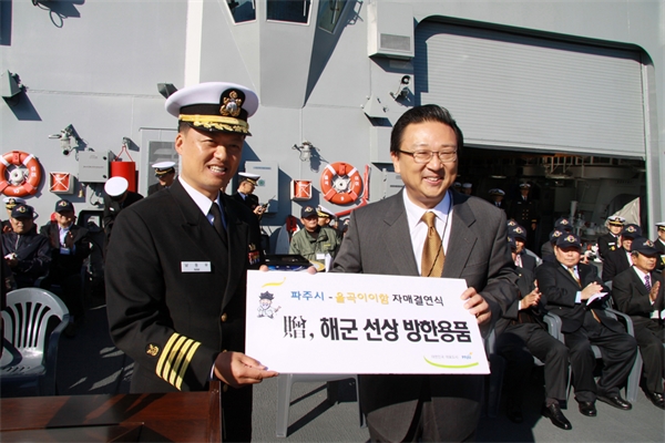 ÆÄÁֽô 26ÀÏ ÁøÇØ ÇØ±º»ç·ÉºÎ¿¡¼ ±¹³» µÎ¹øÂ° ÀÌÁö½ºÇÔÀÎ À²°î ÀÌÀÌÇÔ°ú ÀڸŰῬÀ» ¸Î¾ú´Ù. À̳¯ ÀÌÀÎÀç ½ÃÀå°ú ³²µ¿¿ì ÇÔÀåÀº '»óÈ£ ¿ìÈ£¿Í À¯´ë °È°'¸¦ ´ãÀº Çù¾à¼¿¡ ¼¸íÇÏ°í ±³È¯ÇßÀ¸¸ç ÀÌ ½ÃÀåÀº À庴µé¿¡°Ô ½ºÅ°Àå°©, ³² ÇÔÀåÀº ½Ã¿¡ ÇÔ´ë¸ðÇüÀ» ¼±¹°·Î Àü´ÞÇß´Ù.