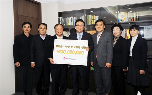 ³ª´®ÀÇ ´ö¸ñÀ» ½ÇõÇÑ LGµð½ºÇ÷¹ÀÌ ÀÓÁ÷¿ø°ú ³ëµ¿Á¶ÇÕÀº ¸Å³â 3õ¸¸¿øÀÇ ÀÌ¿ôµ½±â ¼º±Ý°ú 1õ¸¸¿ø »ó´çÀÇ ¡®»ç¶ûÀÇ ½Ò¡¯À» ±âŹÇϰí ÀÖÀ¸¸ç, Àú¼Òµæ°¡Á¤ û¼Ò³âÀ» À§ÇÑ Èñ¸Á´©¸®ÅëÀå Áö¿ø, ¿¬¸» ÀÌ¿ôµ½±â ÀÏÀÏÂþÁý ¼º±Ý¸ð±Ý, ¼Ò¿Ü°èÃþ À̺ÒÀü´Þ, Ȧ·Î »ç´Â ¾î¸£½ÅÀ» À§ÇÑ ±èÀå Áö¿ø µî ´Ù¾çÇÑ ÀÌ¿ô»ç¶û »ç¾÷À» ÆîÄ¡°í ÀÖ´Ù.